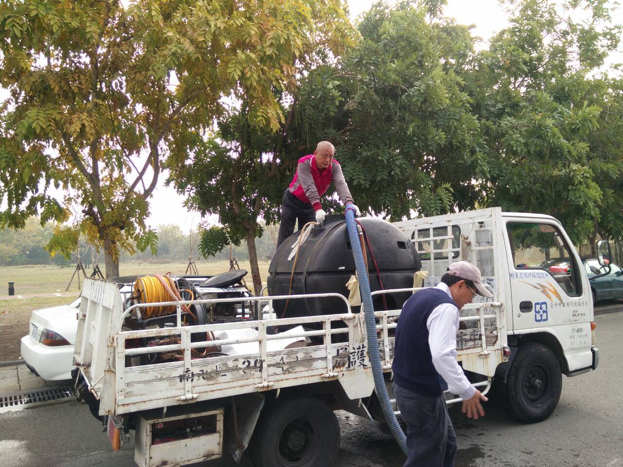 環保局表示,臺中市山海屯21區各清潔隊原均設有地下水取用水塔,但目前各區清潔隊清潔車輛優先利用福田、石岡壩水資源中心回收水、營建工地水井地下水,希望保留更多自來水供民生使用,與市民一起度過缺水難關。(4/9*3)