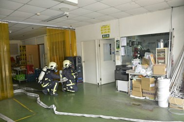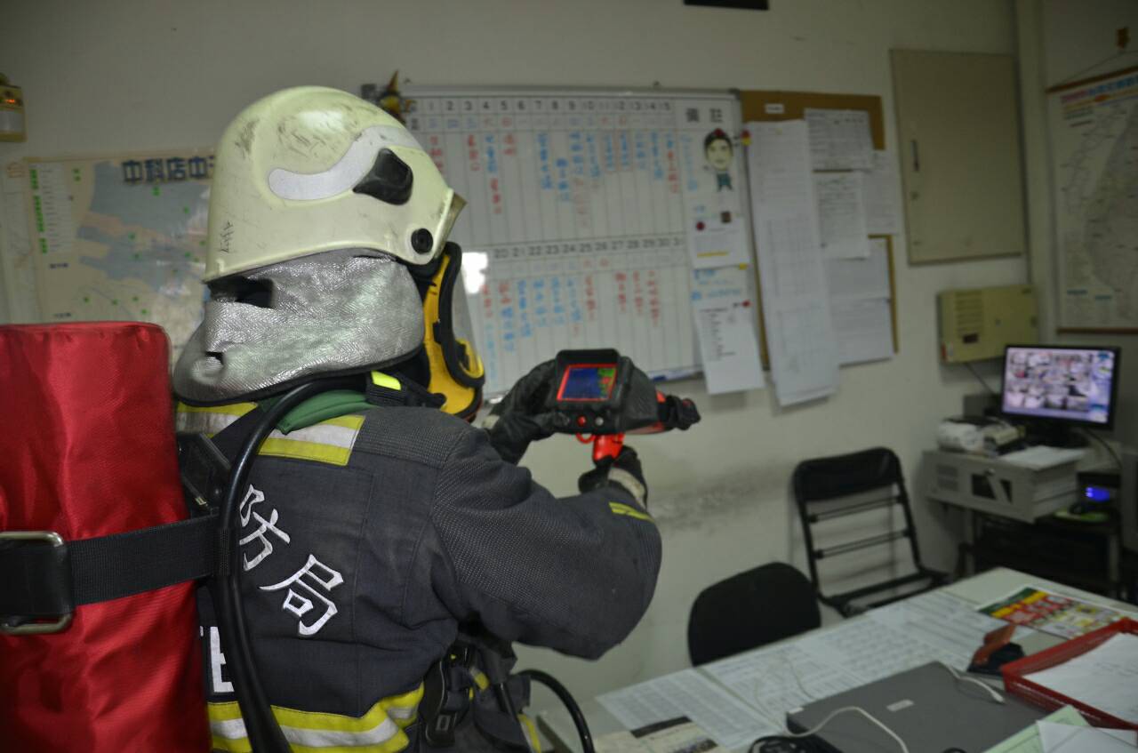 演練過程中,消防局運用先進的紅外線熱顯像儀探測火場溫度;此外,除了假設有民眾受困,也模擬因為火勢太大,消防人員無法順利退出火場。此時消防局出動緊急救援隊實施緊急撤離,可有效避免救災人員陷於高溫的危險。