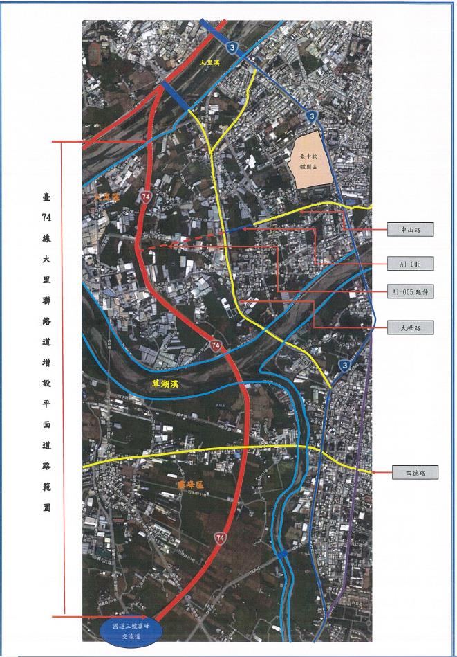 務「大里區都市計畫AI-005(中山路)延伸工程」仍由營建署補助,改為直接依非都市土地用地取得程序,辦理用地取得及後續工程施工事宜。(5/1*12)
