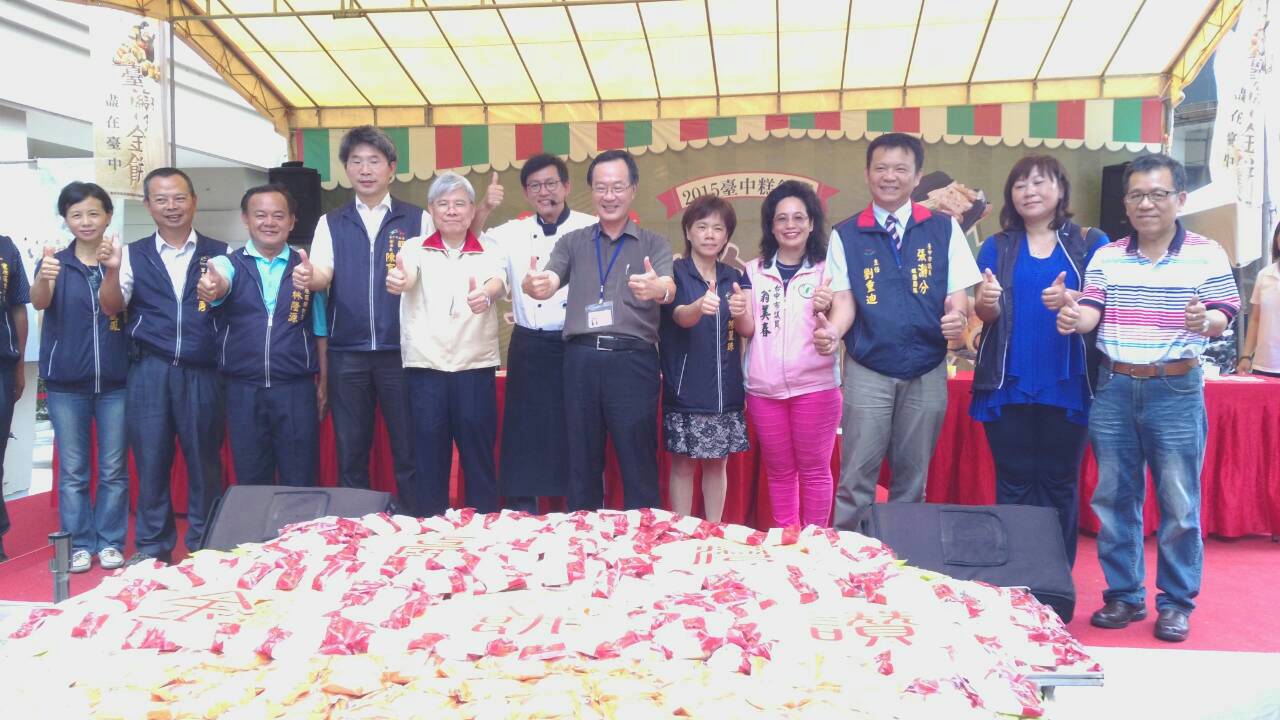 臺中市政府經濟發展局主辦「2015臺中國際糕餅節」,今日下午在豐原太平洋百貨盛大舉行,包括經發局副局長洪耕然、觀光旅遊局副局長陳育正、豐原區長陳麗珠、臺中市糕餅商業同業公會理事長周子良、市議員翁美春等人都到場與民眾同樂;並與型男主廚詹姆士共同彩繪糕餅。為回饋喜愛臺中糕餅的民眾,現場也揭開與糕餅業者合作規劃的「臺、灣、金、餅、讚」意象大餅,分送給民眾免費品嚐。