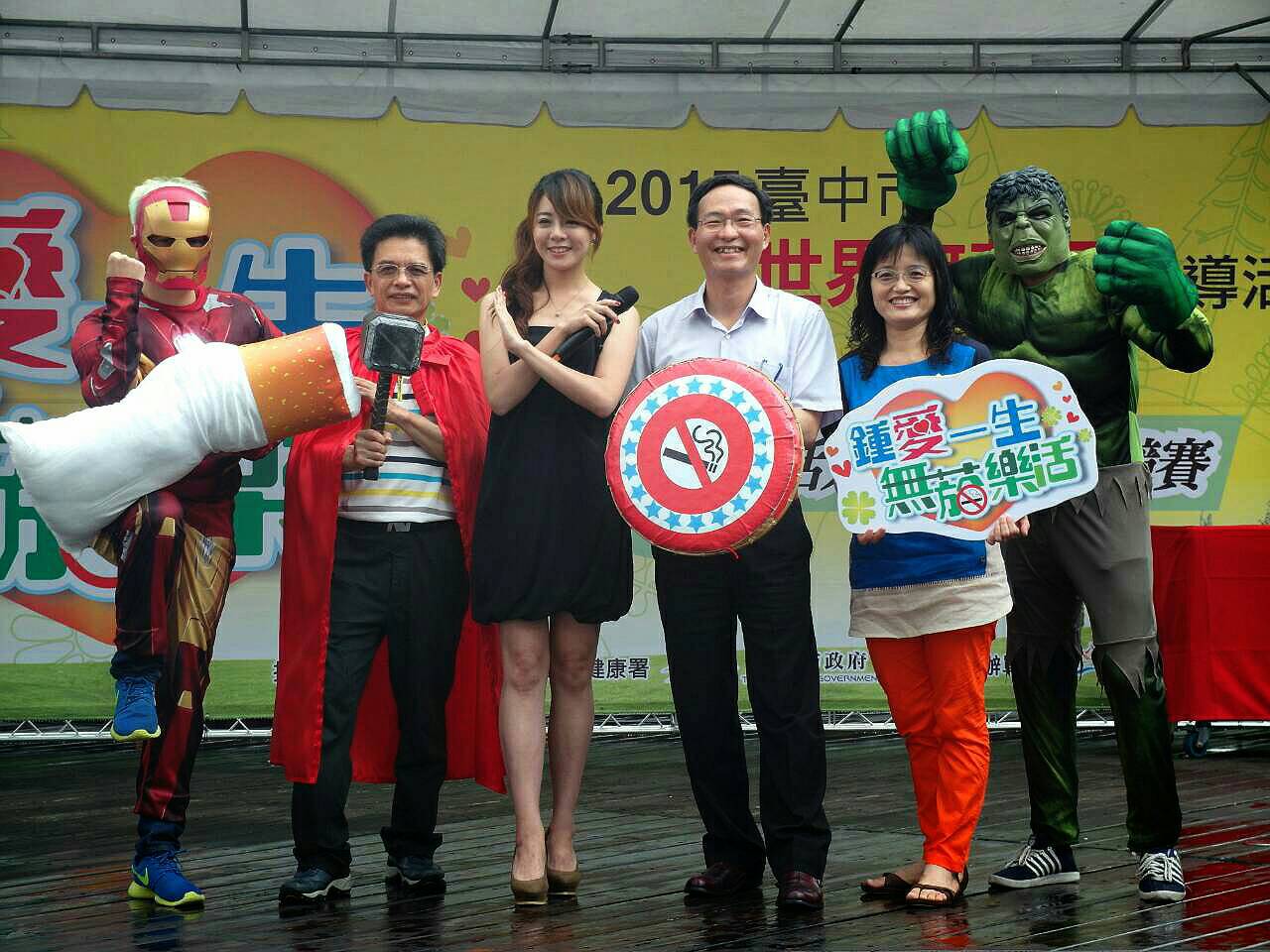 臺中市政府衛生局響應世界無菸日,以「舞」活力、「筆」健康兩大活動主題,打造今年無菸日宣導活動,首場今(23)日於草悟廣場登場,邀請熱播戲劇插曲演唱歌手解偉苓擔任無菸大使,將與臺中市政府衛生局副局長陳南松巧扮角色共組「拒菸者聯盟」,帶領大家勇抗菸害大魔王,迎向無菸健康好生活。