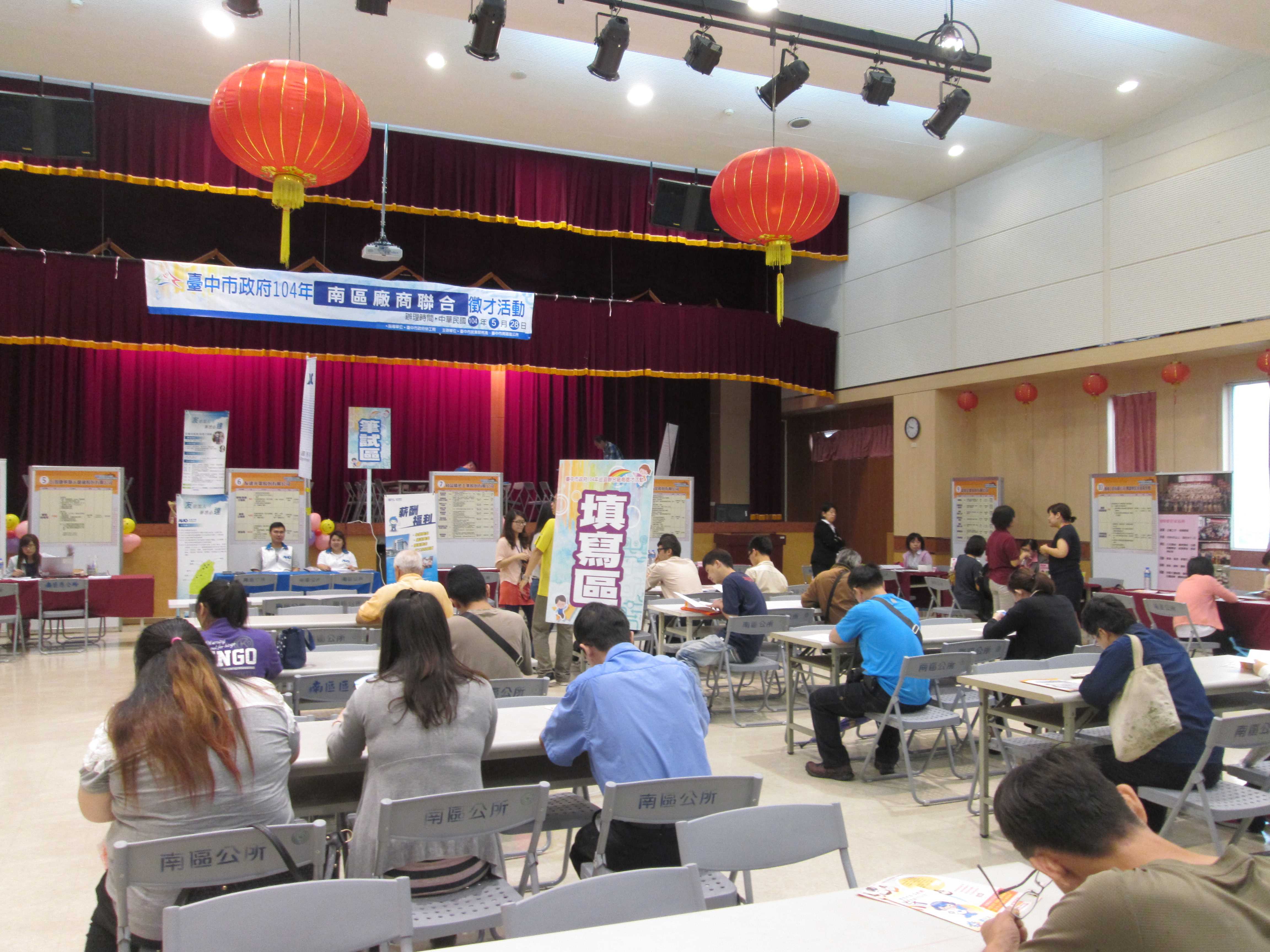 臺中市就業服務處今(28)日與南區區公所合作舉辦廠商聯合徵才活動,共16家廠商設攤,提供1,698個工作機會,吸引近300名求職者參加,初步媒合125人次;6月12日上午9時將再於南屯區區公所舉辦第4場巡迴聯合廠商徵才活動,歡迎參加。