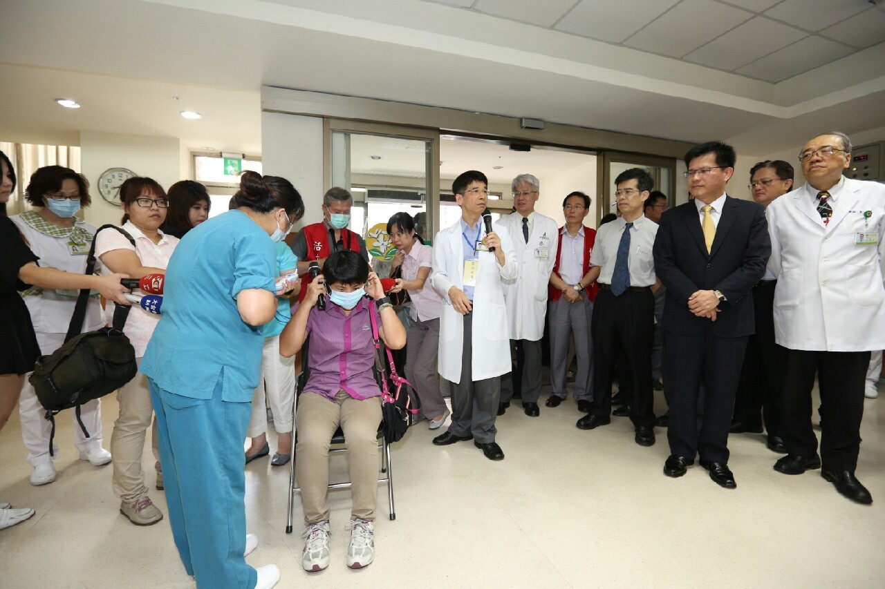「防疫視同作戰」林市長表示,隨著這次MERS疫情在台灣鄰近地區升高,為做好防範措施,市府已於6月1日召開跨局處整備會議,並在今日進行模擬演練;防疫防線一旦出現缺口,後續造成的影響將相當大,希望藉由今天的演練,進一步做好防疫準備工作。