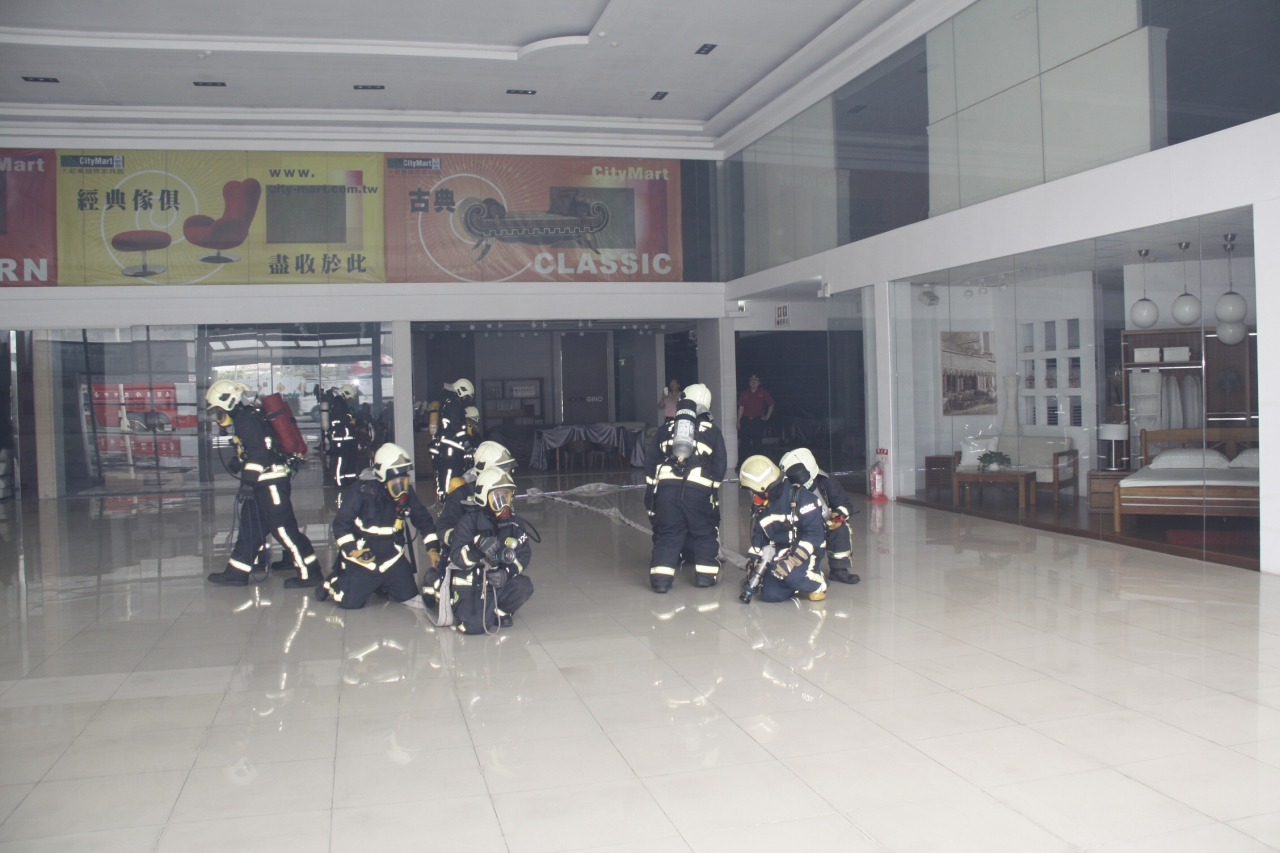 大都會國際家具館的人員也說,消防局今天到此辦理演練,顯示市府及消防局對公共場所消防安全的重視,也讓他們可以實際了解消防的搶救作為,對員工及購物民眾都有正面的教育意義。