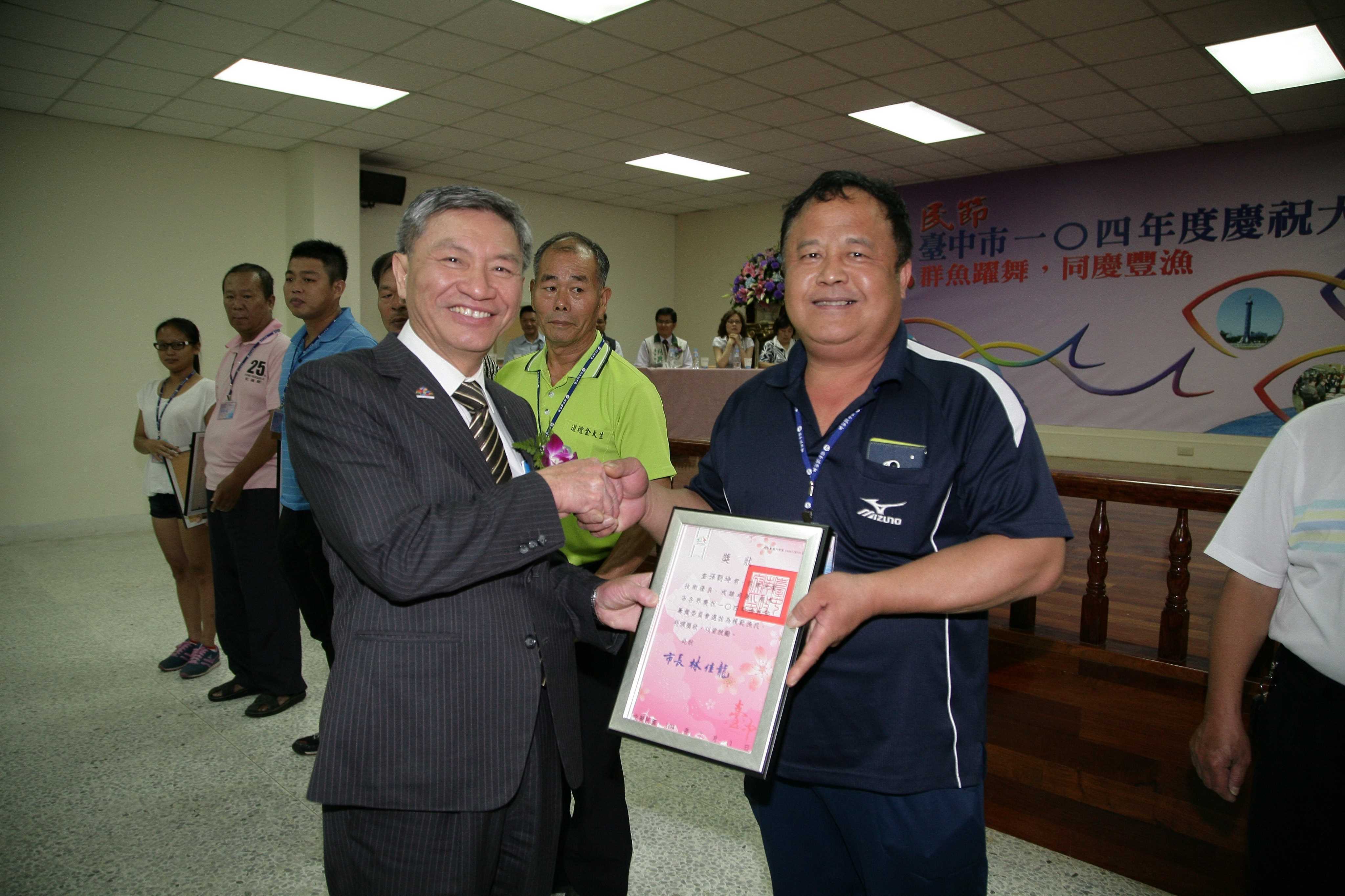 今日獲頒模範漁民的楊貴雄說,今年是他二次獲獎,感到相當光榮。他從16歲就開始捕魚,原本在台東成功以捕鯽魚為生,20幾年前來到台中,土魠魚、鯊魚、花枝、剝皮魚等都是他主要捕捉項目,他認為最辛苦莫過於捕撈土魠魚,因為必須在凌晨捕撈,慢慢起網才抓的多,不過,雖然辛苦,身為漁民,不認真就沒有結果。(7/1*16)