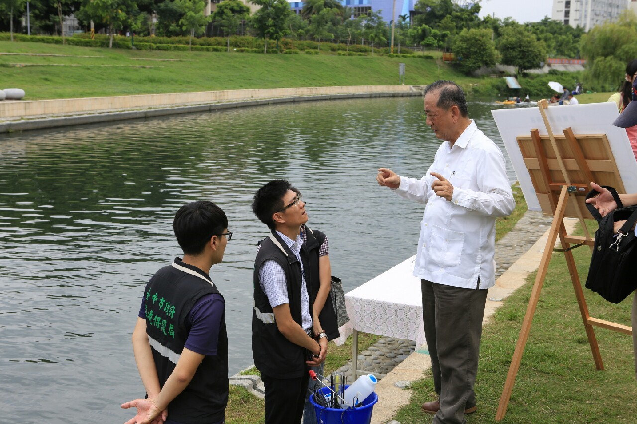 林副市長在水利局長周廷彰的陪同下前往康橋視察,立法委員黃國書、何欣純、市議員李天生、林碧秀、張芬郁、何敏誠與南區區長鍾正光等人均到場關心。環保局先前已進行多次水質調查,今天再度進行水質檢測,pH值與溶氧量皆符合標準。