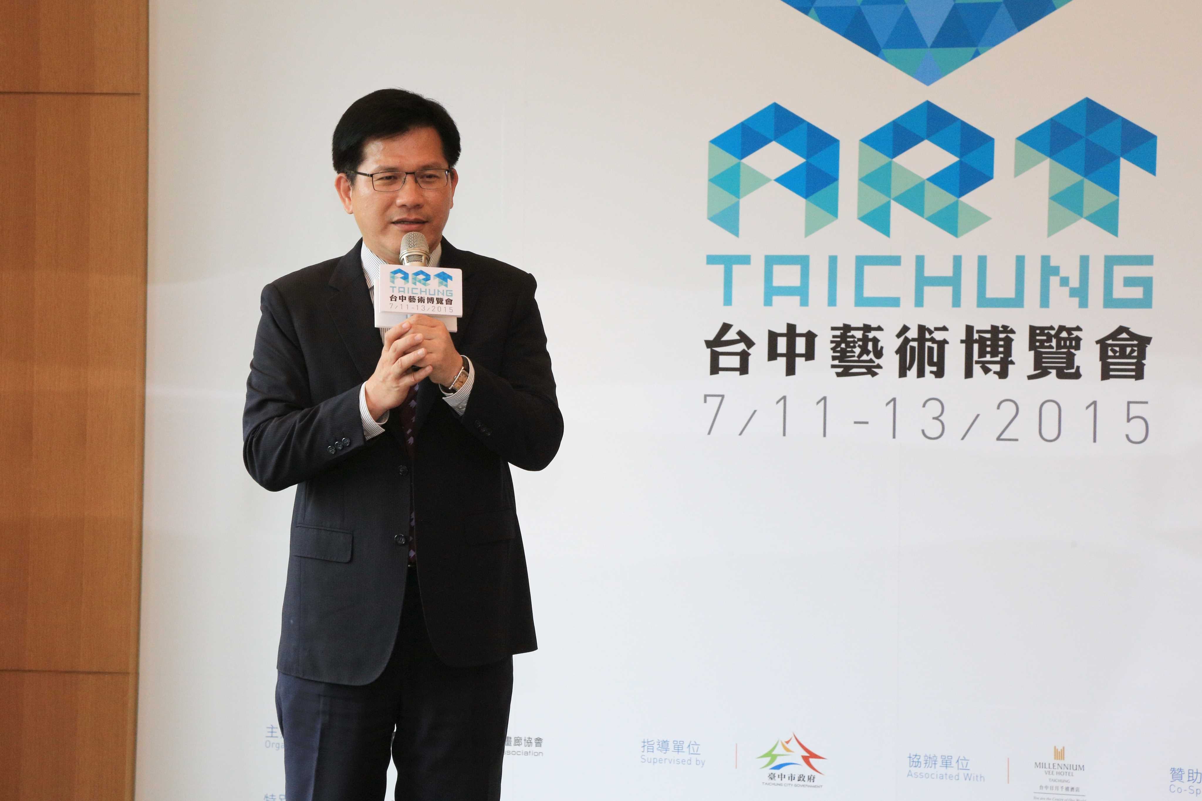 市長林佳龍今(10)日在文化局副局長施純福的陪同下,與中華民國畫廊協會理事長王瑞棋共同主持台中藝術博覽會開幕儀式。立委黃國書、社團法人中華民國畫廊協會理事長王瑞棋、台中藝博執行委員會召集人鍾經新及台北藝博執行長王焜生及中華民國畫廊協會資深顧問陸潔民等人皆到場共襄盛舉。