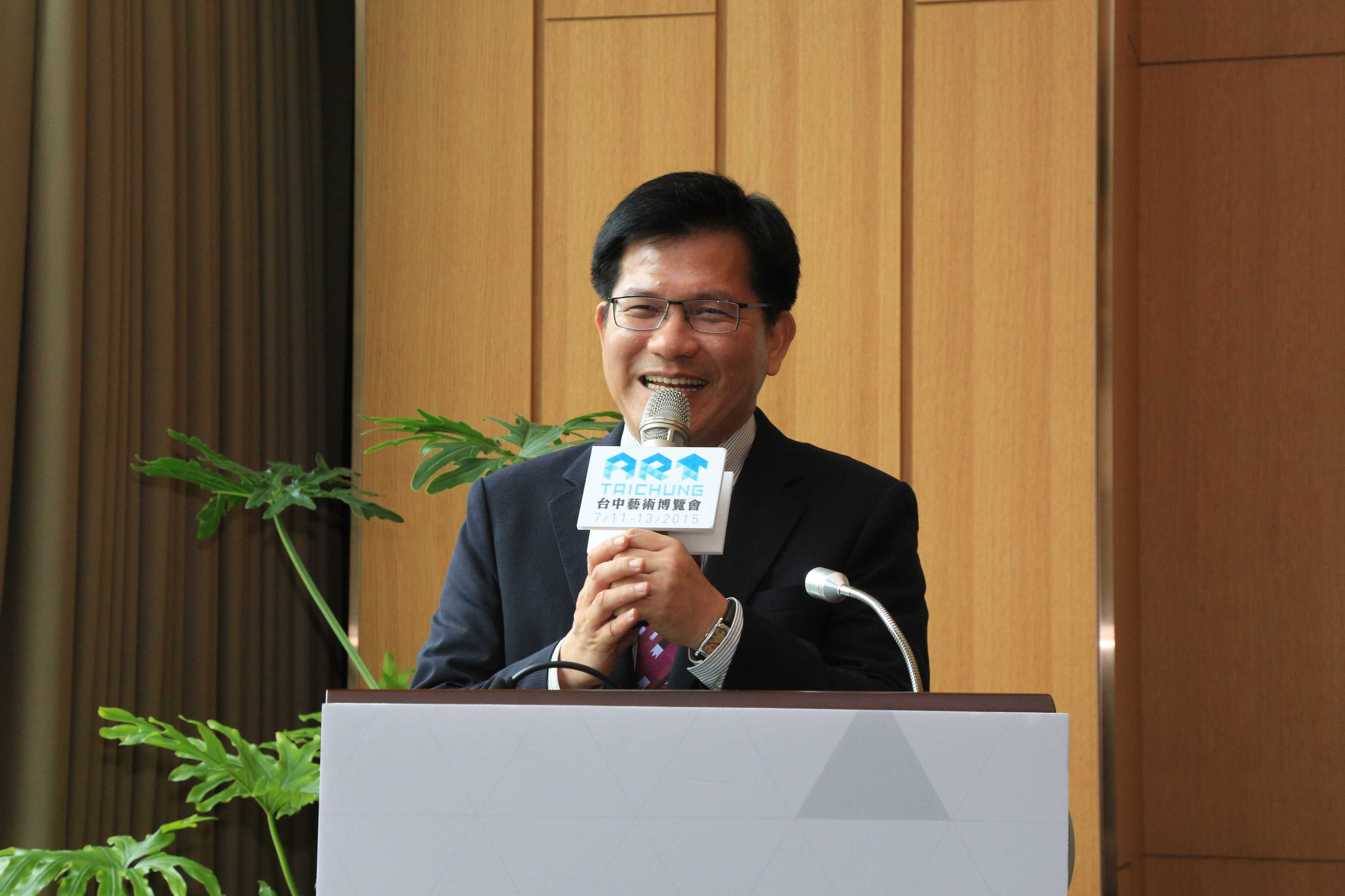 林市長指出,台中市作為文化城,文化的硬體建設與軟體內容都要齊頭並進,台中市擁有非常好的條件,除了大家私人收藏的藝術品外,在國美館、科博館與公共資訊圖書館,以及現在發展的文化園區、舊酒廠,以及最近剛落成的台中文學館,都是重要的文化景點,未來也計畫透過綠空鐵道保留火車站周邊,打造自行車道並活化綠川,串連整個舊市區的文化景點,讓台中成為真正的水岸花都。