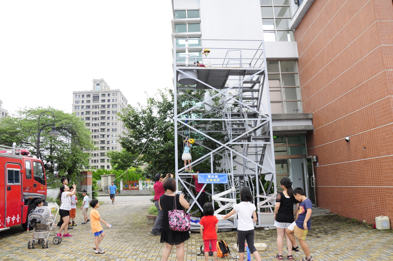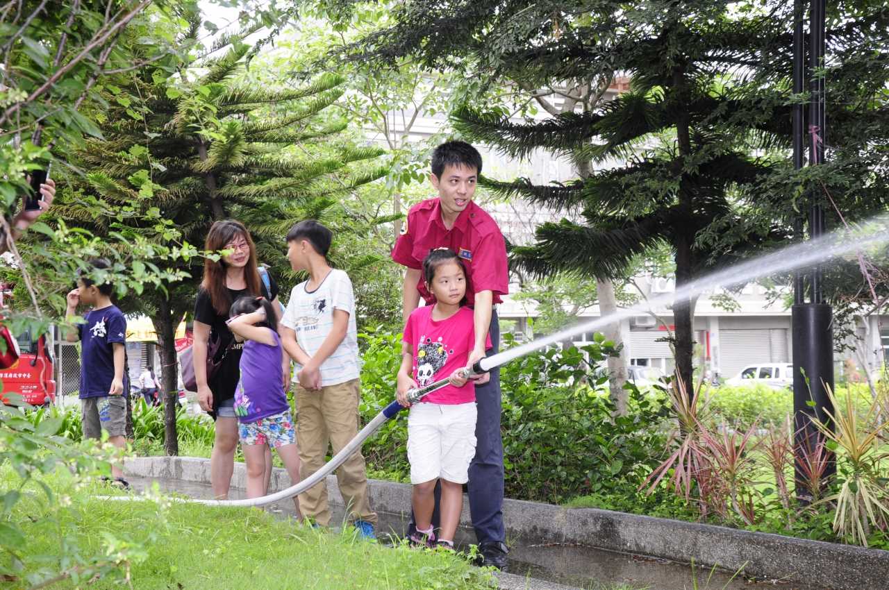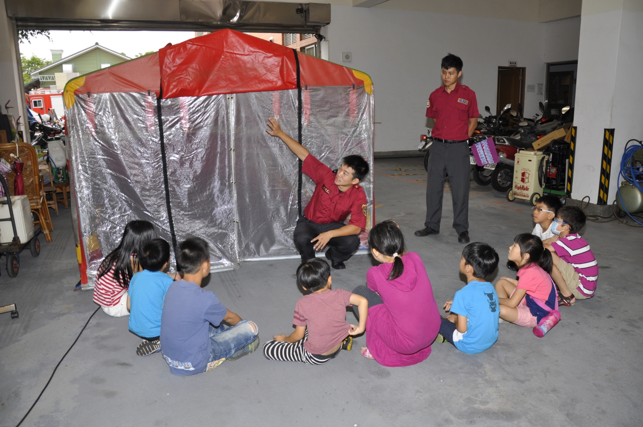 暑期消防營隊-消防小神兵活動,包括體驗室內消防栓操作與緩降機的使用,學習防火知識及火場避難逃生要領,推廣住宅用火災警報器,達到及早偵知火災發生、儘速通報及避難逃生之目的,小朋友反映熱烈,現場熱鬧滾滾。