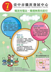 為帶領職場新鮮人找出自我工作價值、提升職場適應力及創新力,勞工局職涯發展中心規劃7月份「職涯充電站,職場無畏向前行」及8月份「圓夢、行動─職場執行力」兩大系列活動,協助民眾掌握職涯方向,適才適性就業。