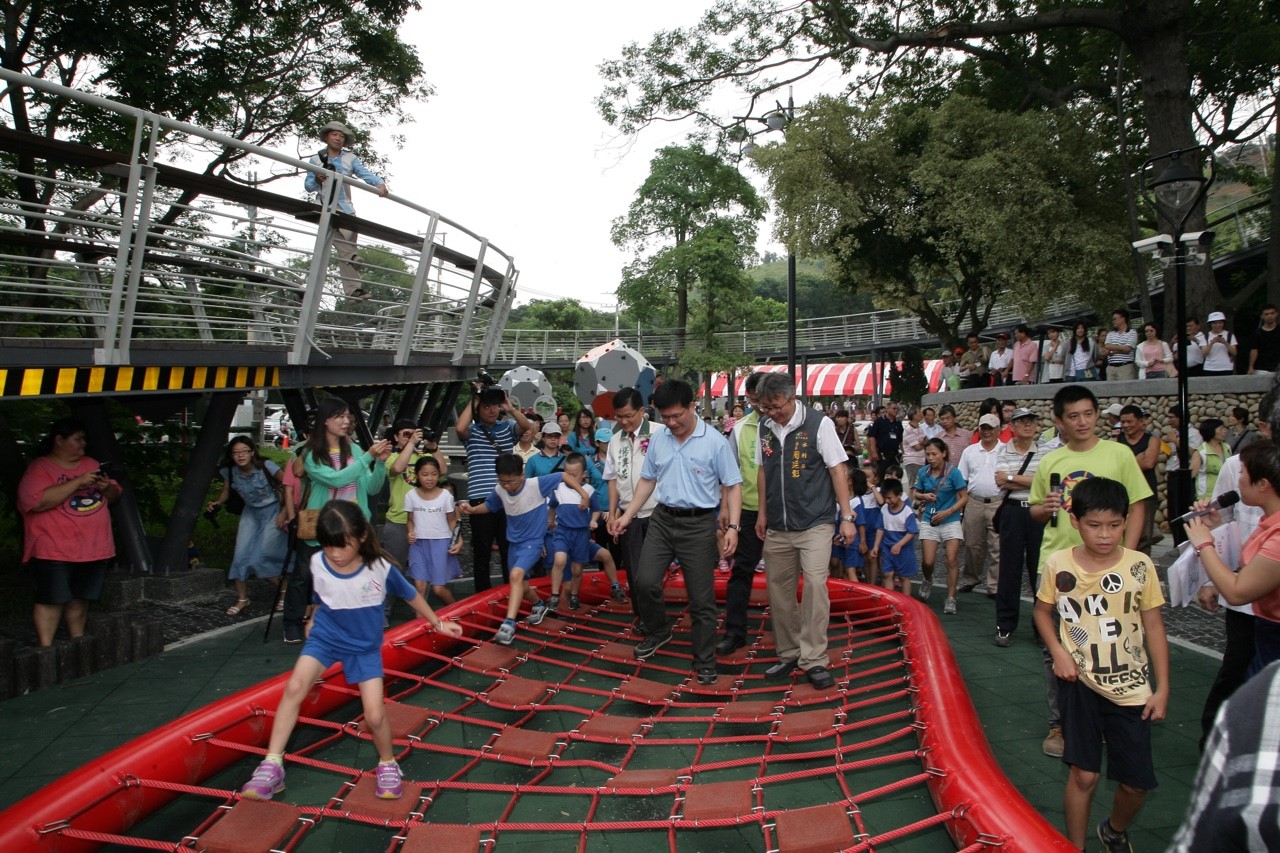 在水利局長周廷彰、建設局長黃玉霖等人的陪同下,林市長主持今日的啟用典禮;立法委員蔡其昌、副議長張清照、市議員王立任、顏莉敏、楊典忠、尤碧鈴、前議長張清堂等在地民意代表也到場見證。林市長並與來賓一起體驗園區內新完成的極限飛輪、部落格子遊戲攀岩等多項運動設施,希望青少年暑假期間多來這裡體驗優質的休閒運動。