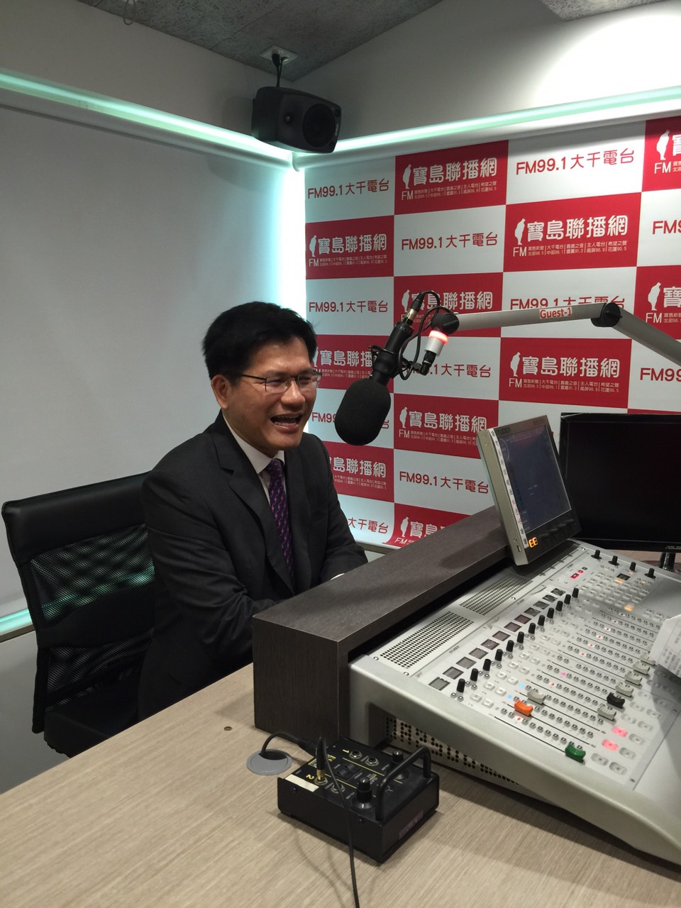 「回到大千就像回到家!」林市長說,他和太太都曾在大千電台主持節目,他在5、6年前主持「超級大民意」,這是他唯一當過主持人的節目,台呼是「我是台中一尾活龍」,印象格外深刻;而夫人則主持「大城小事‧有你真好」公益節目,作為社福和公益團體的資源整合平台,兩人與大千電台合作愉快。