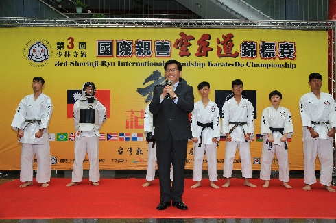 林市長也感謝國際少林寺流空手道聯盟總會長保巖、台灣少林寺流空手道協會理事長蔡尚諭、鍊心館台灣總部長黃啟昇,以及民意代表等人的協助,比賽第一回和第二回都在日本舉行,第三回就選在台灣,雖然他剛上任預算有限,市府也是盡力贊助,台中市才能舉辦這次比賽。