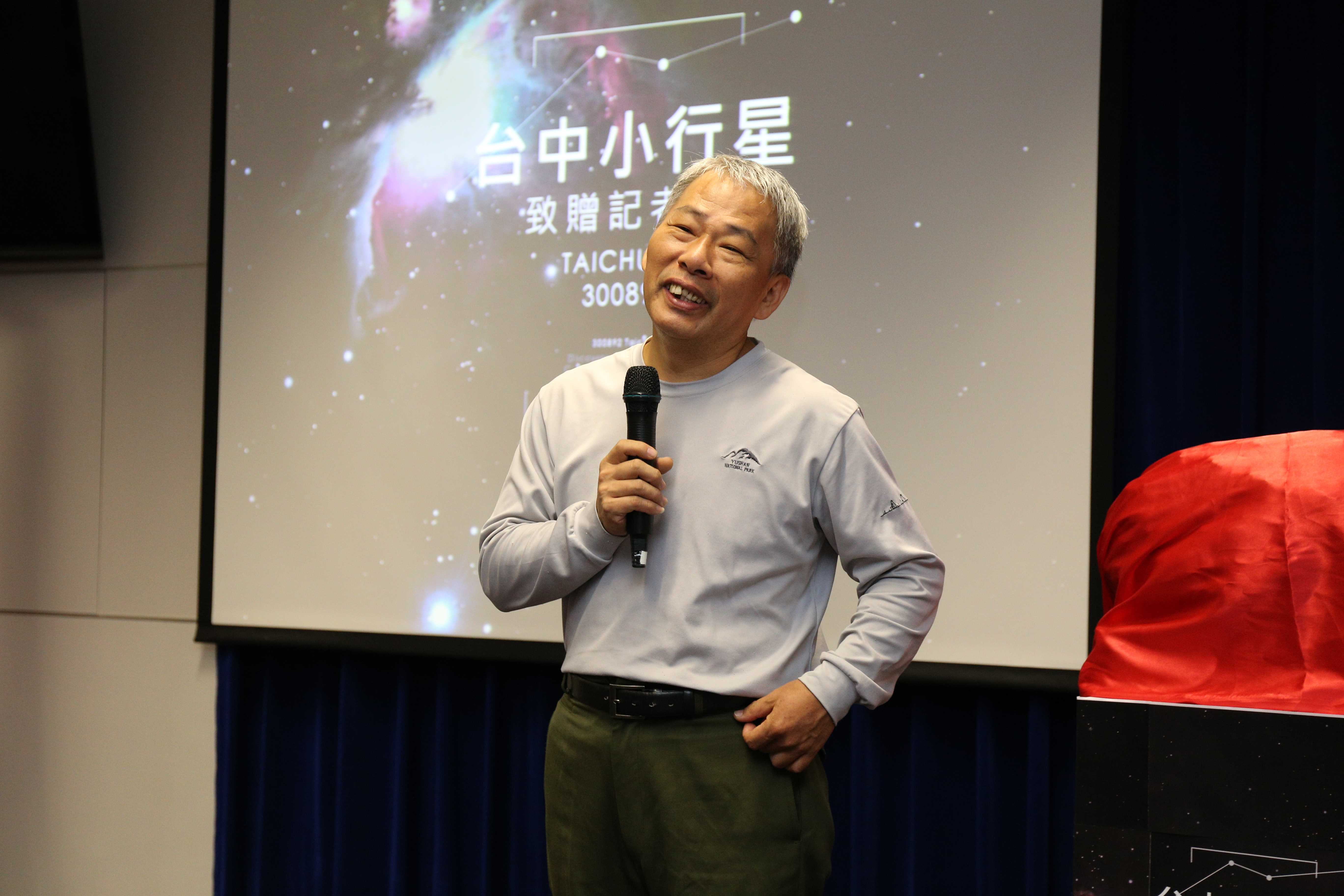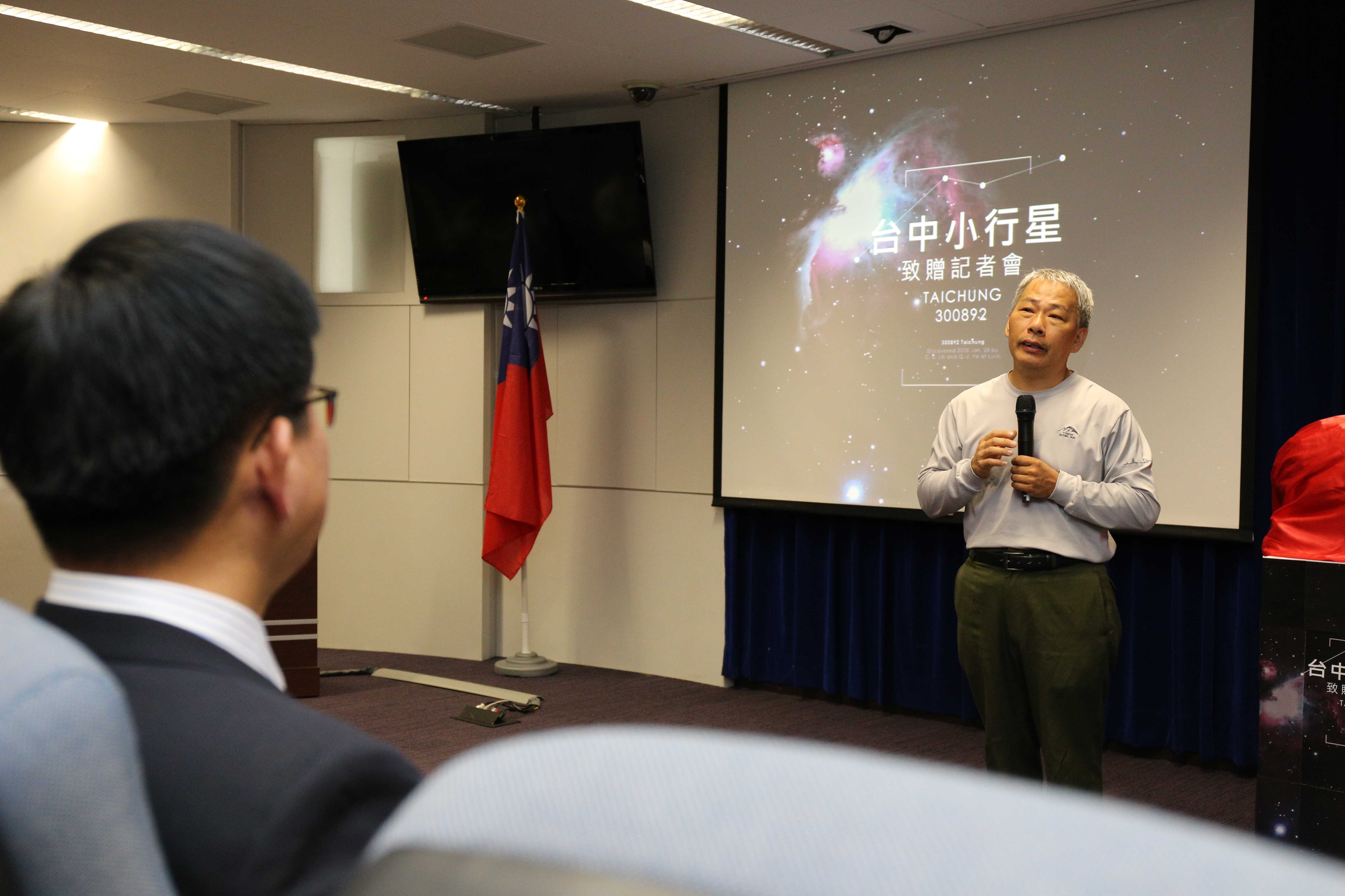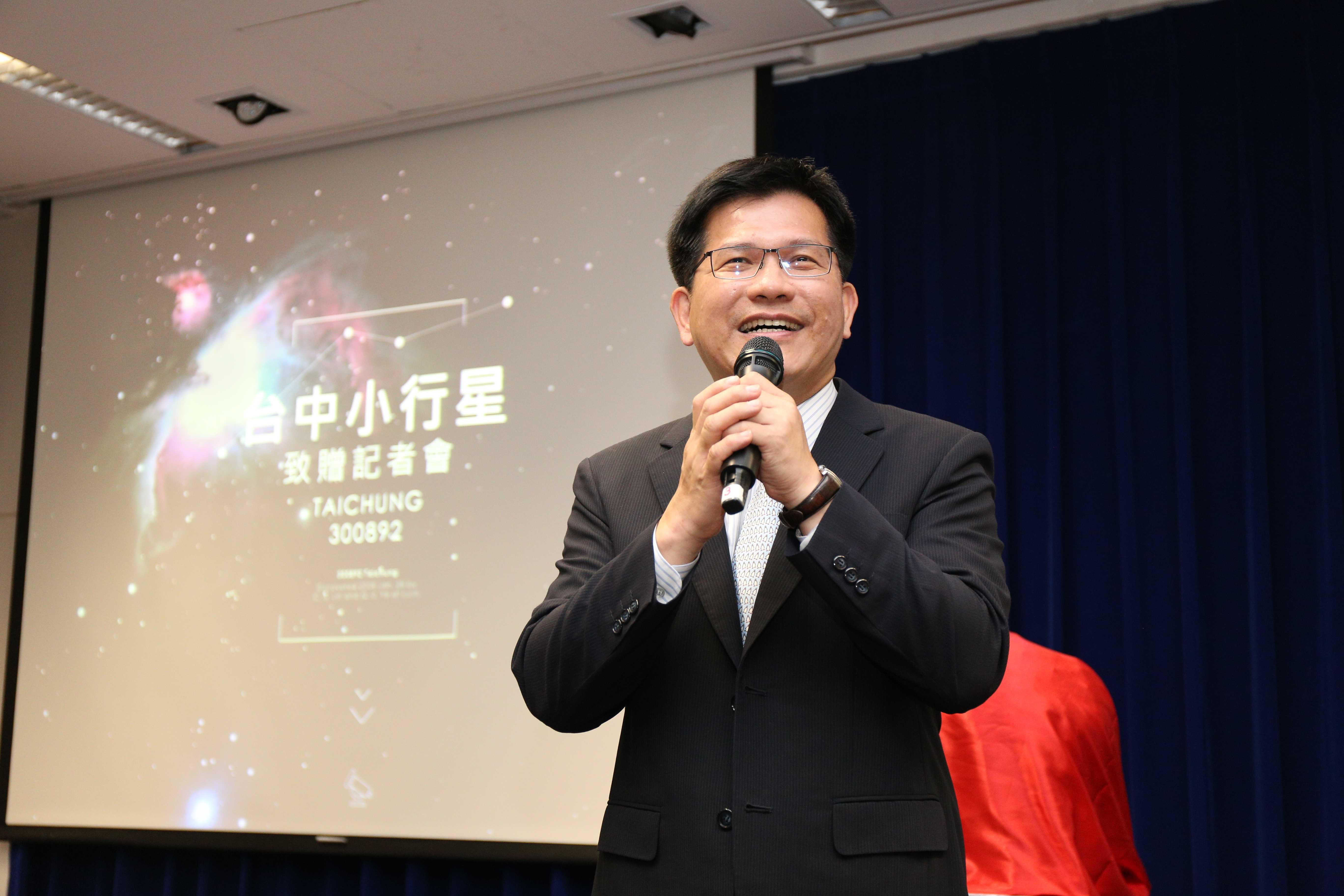 「台中」小行星的發現者林啟生表示,他長住台中逾30年,對台中有一份感情,因而將小行星命名為台中,並在2012年初獲得國際天文聯合會小天體命名委員會(IAU CSBN)審核通過,現在致贈給台中市政府,希望與大家一起分享這份榮耀。他並與天文協會理事長呂其潤一同將這顆小行星的命名證書及縮小版模型贈予台中市政府,由林市長代表台中市民接受這份榮耀。