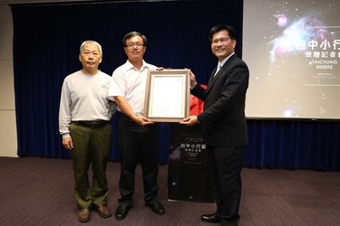 為推崇林啟生與葉泉志兩位天文觀測員的成就,台中市政府與台中市天文學會今(28)日舉行記者會,向市民正式介紹這顆與台中連結的小星星,期待進一步引發市民探索天文學的興趣。包括林市長、新聞局長卓冠廷、台中市天文學會理事長呂其潤以及小行星發現者林啟生等人均到場共襄盛舉。