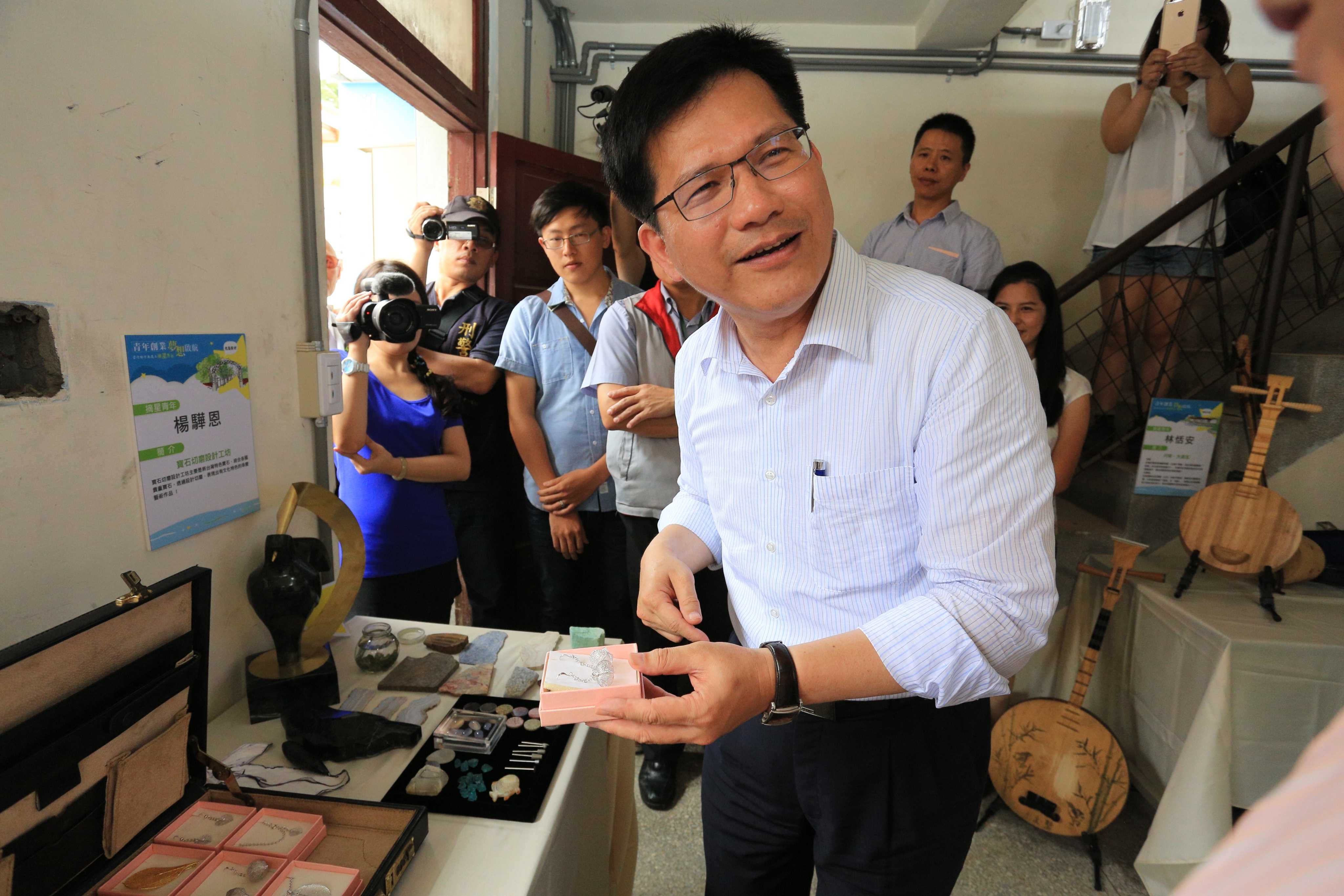 摘星創業青年臥虎藏龍,第一期創業類別以文創、服務類、電子商務為主,今現場展出54組摘星青年創新創意十足的創業商品,林市長一一參觀青年朋友的作品,青年分享創業一路點滴;林市長則交換創意、創業想法。