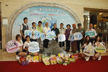 台中市政府觀光旅遊局今(30)日在台中港酒店辦理記者會,觀光旅遊局長陳盛山帶領出席貴賓為「2015愛在藍帶海洋」沙雕創作揭幕,show girl並帶來活力滿分的熱舞表演,海線農會及台中區漁會更展示各種台中的優質農特產品,邀請民眾共同感受盛夏熱情的台中藍帶海洋。