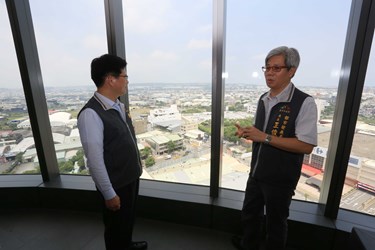 林市長今(31)日視察中清路交流道附近乙種工業區細部計畫地區,由都發局長王俊傑、地政局長張治祥與相關局處代表、西屯區長何國裕等人陪同,眾人在全營公司董事長賴維上提供的一處高地勢場地,俯瞰整個基地狀況,並共同討論未來的推動方向。