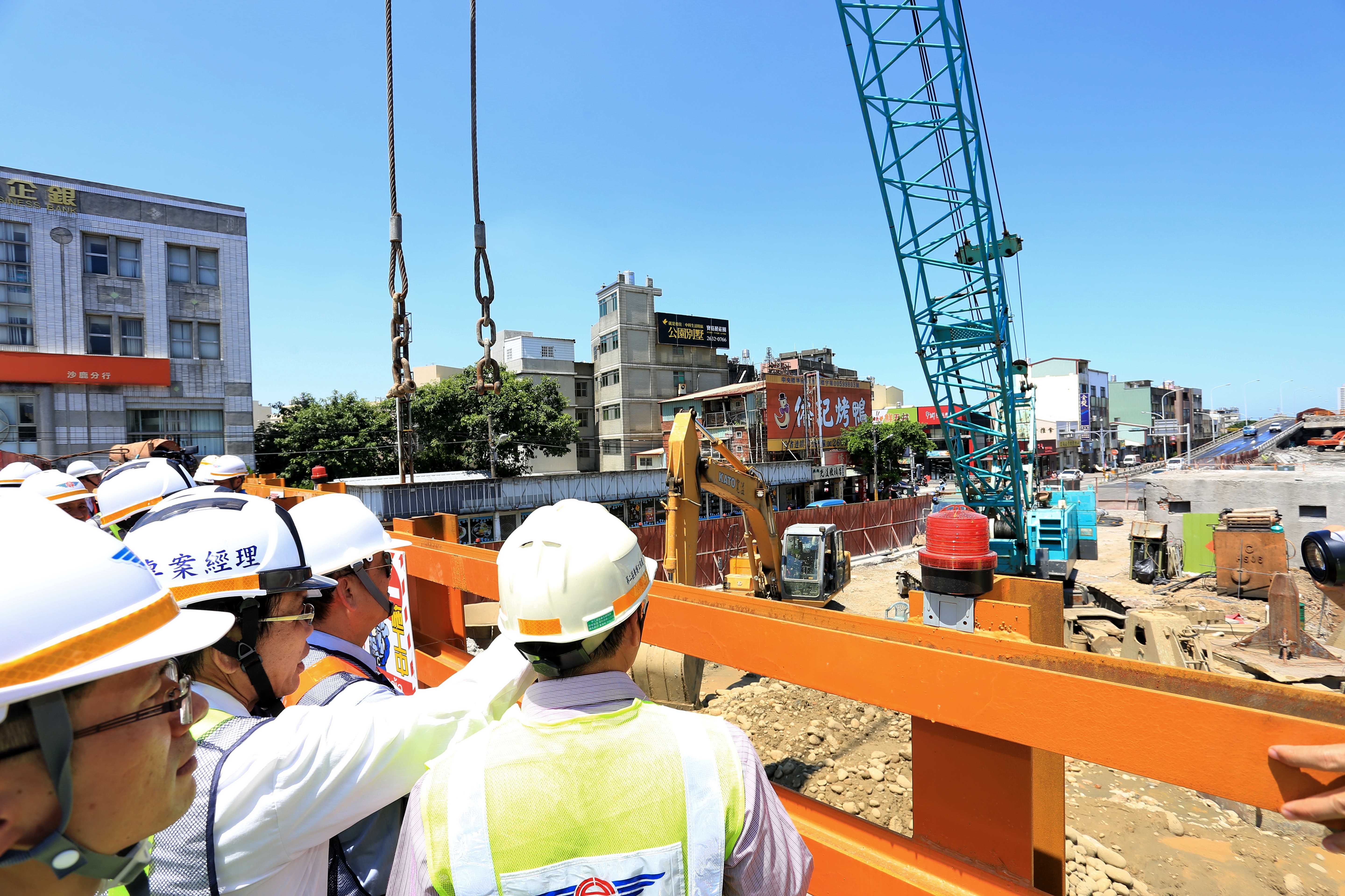 沙鹿陸橋因橋梁老舊,由交通部公路總局第二區養護工程處卓蘭工務所辦理第一階段橋梁主線施工。林副市長今(4)日在交通局長王義川陪同下前往視察工程進度,林副市長感謝公路總局進行此一工程,也肯定相關交通維持計畫都確實執行,期許在安全、順利及零工安的情況下順利完工,帶給市民更大的方便;由於颱風可能襲台,林副市長也請工程單位加強防颱措施,避免意外發生。