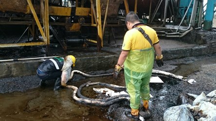 環保局表示,昨(8)日接獲通報,清水區護岸路旁的灌溉溝渠水質呈現黑色並夾雜瀝青味,隨即派員會同台中農田水利會清水工作站人員勘查,循線查獲黑色重油廢水源頭應為某瀝青廠,因強風吹倒煙囪後重擊儲油槽,導致洩漏重油約500公升,第一時間並未採取任何防止油污染擴大應變措施。