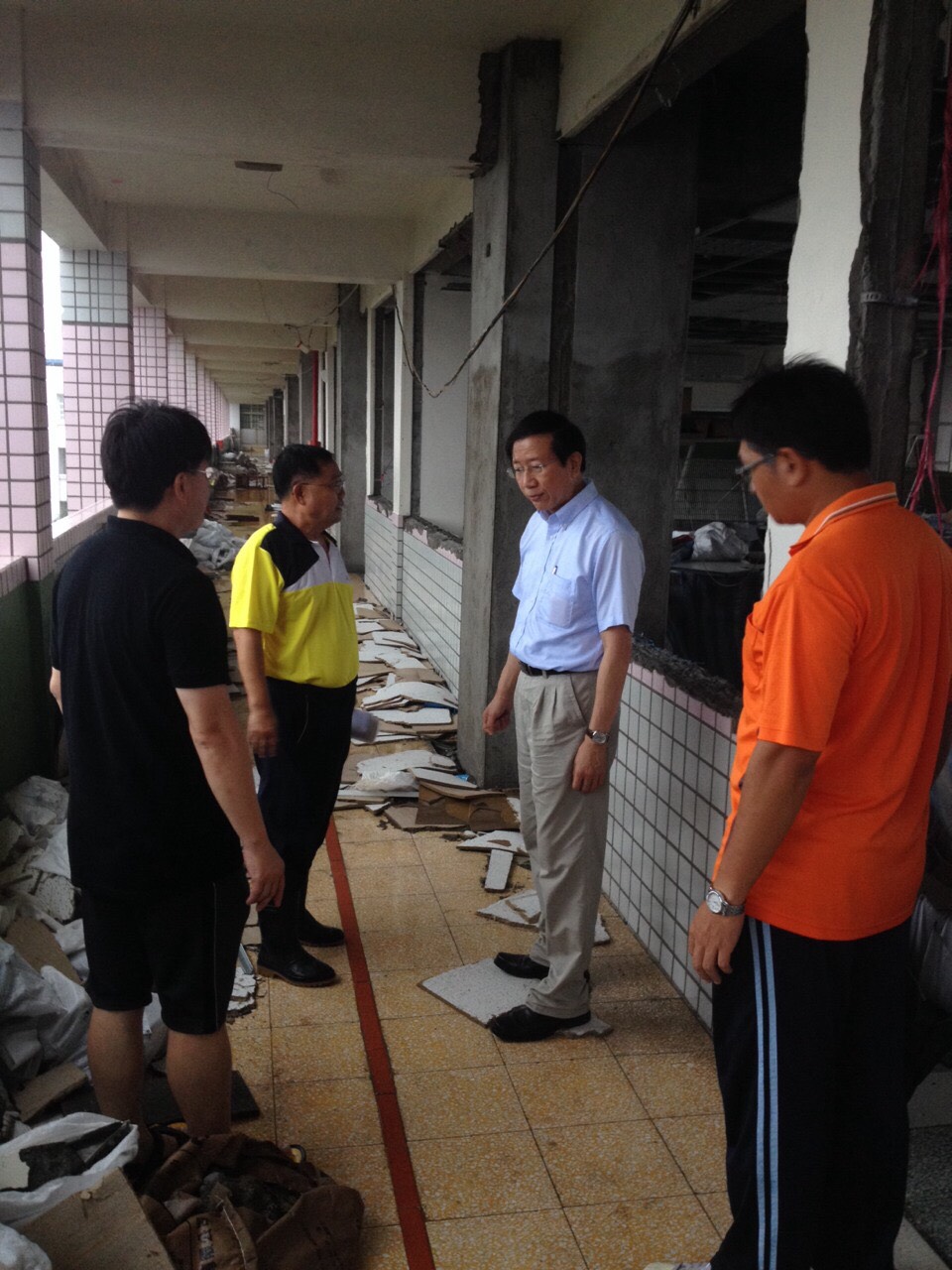 顏局長表示,明(10)日將再會勘原市區災損較嚴重的學校,災情嚴重的學校將列為優先處理,教育局會全力投入經費,並動用災損金與第二預備金,儘速撥補災損修復經費,全力協助學校災害復原工作,在開學前完成災害重建工作。(8/9*13)