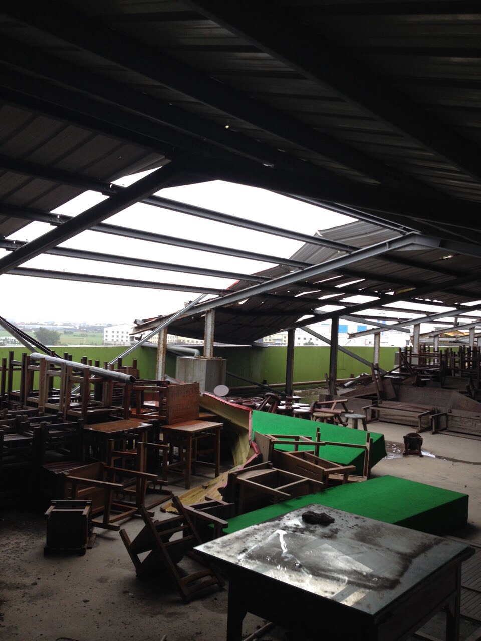 教育局指出,台中受災損較嚴重的學校,多數是教學大樓的鐵皮屋頂或窗框被強風掀開,導致掉落與破損;部分因校舍鐵皮掀飛,掉落路面傷及民宅;部分學校則是校園圍牆倒塌與樹木傾倒。