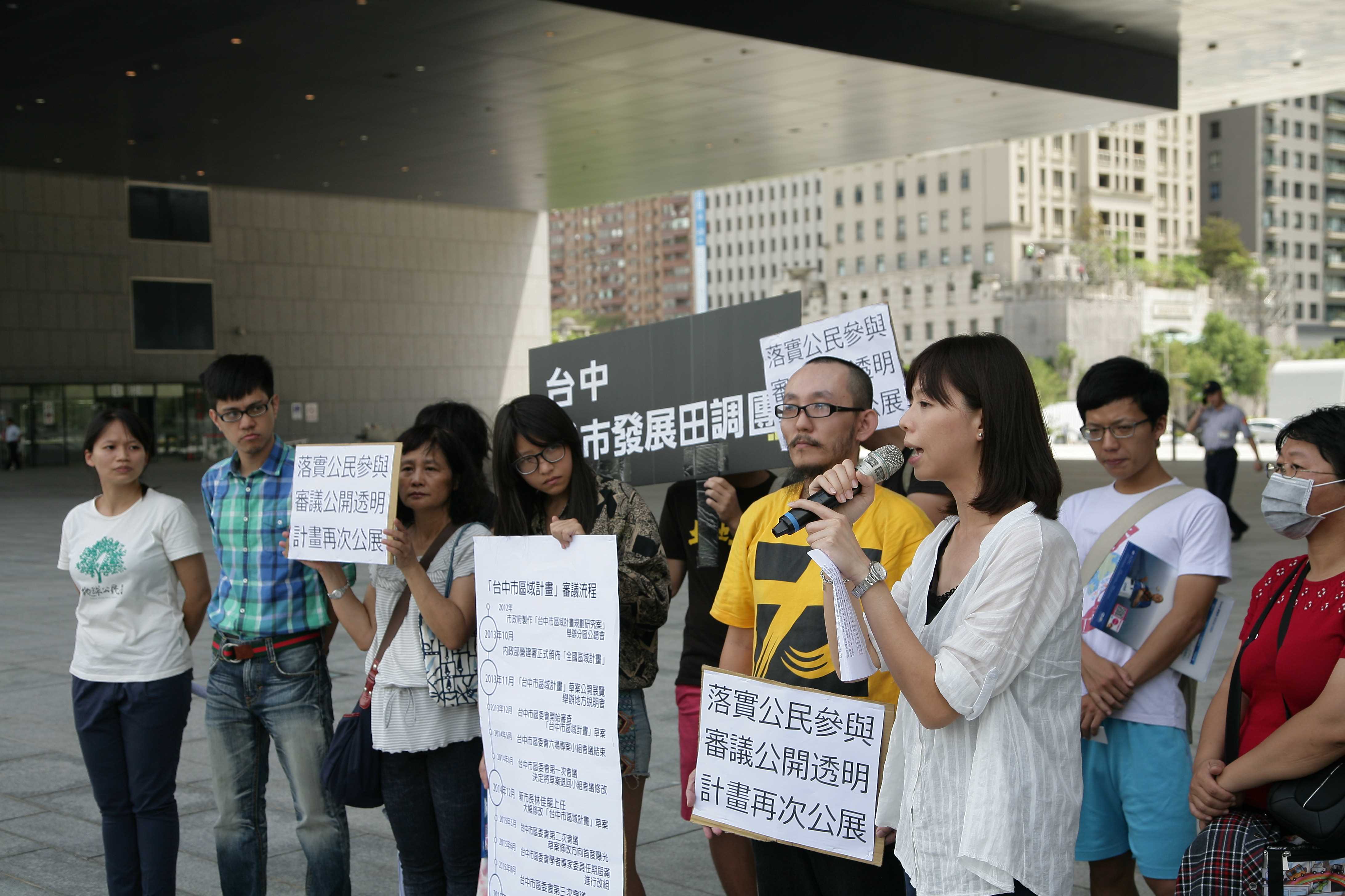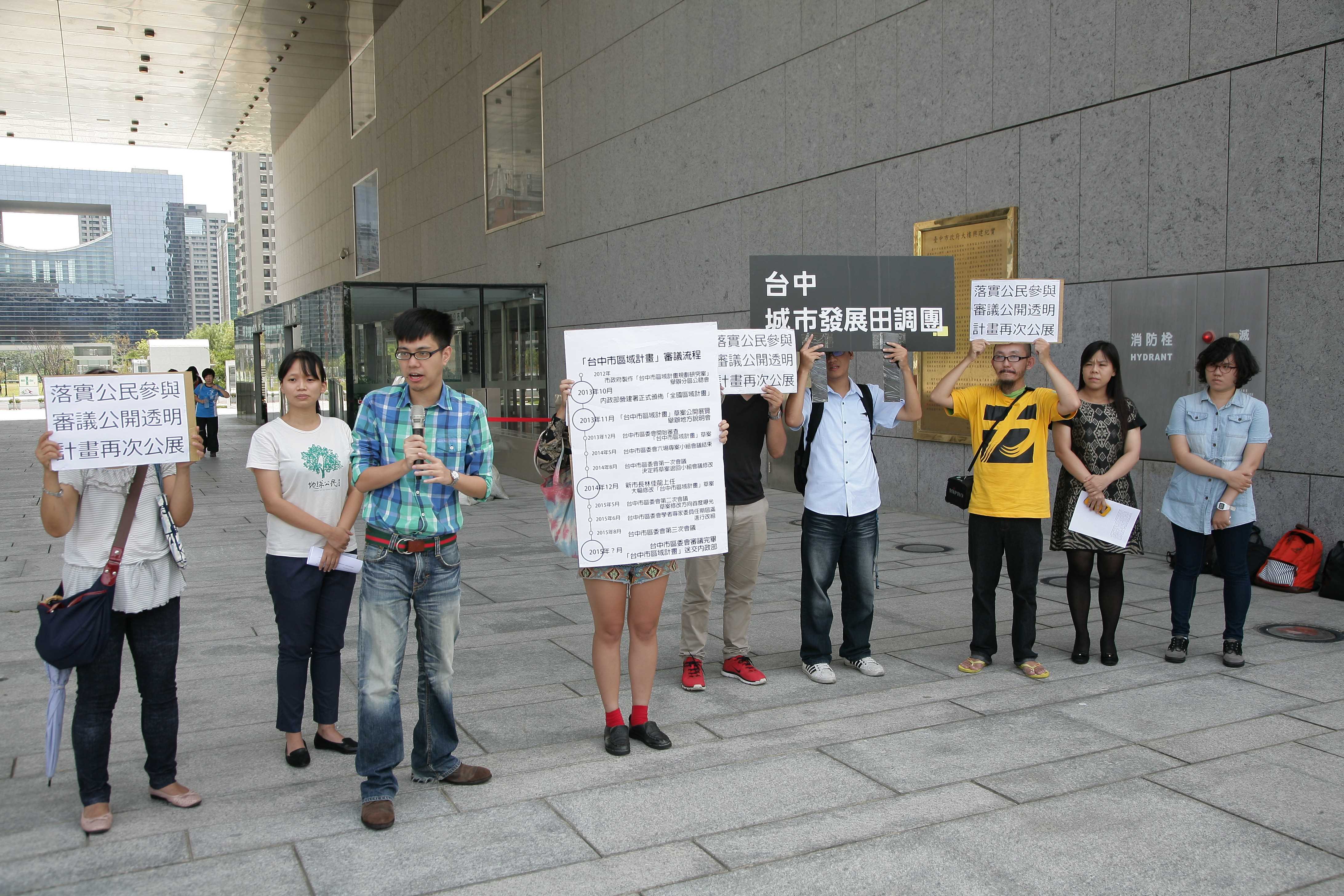 台中城市發展田調團及地球公民基金會今日出席在台中市政府市政大樓舉行的「台中市第3次區域計畫委員會」,並召開會前記者會,希望台中市區域計畫委員會審議情形落實資訊透明與公民參與。都發局也派員前往致意,都發局表示,歡迎民眾列席台中市區委會聽取區域計畫內容說明並發表意見,會中所提供意見將作為區委會審議的參考。