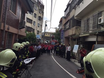 為強化狹小巷道內火災發生時的人命搶救、車輛部署等應變措施,市府消防局第一救災救護大隊今(10)日在豐原區南陽路國民新村辦理狹小巷道搶救演練,同時在現場進行防火宣導,以提升民眾的避難知識,共出動各式消防車14輛,消防員70人。