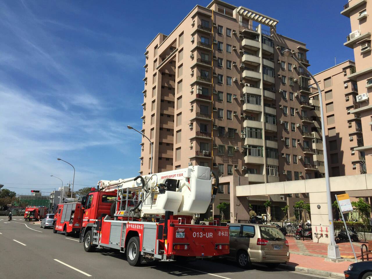 集合住宅若發生火災,大量高溫濃煙會沿管道迅速蔓延,為了提升消防人員的相關搶救技能,市府消防局第四救災救護大隊今(11)日前往清水區和平新城實施演練,出動所屬沙鹿、清水、梧棲、大肚、龍井、犁份、清泉等分隊,消防車共12輛、消防員35人參演,陣容龐大。
