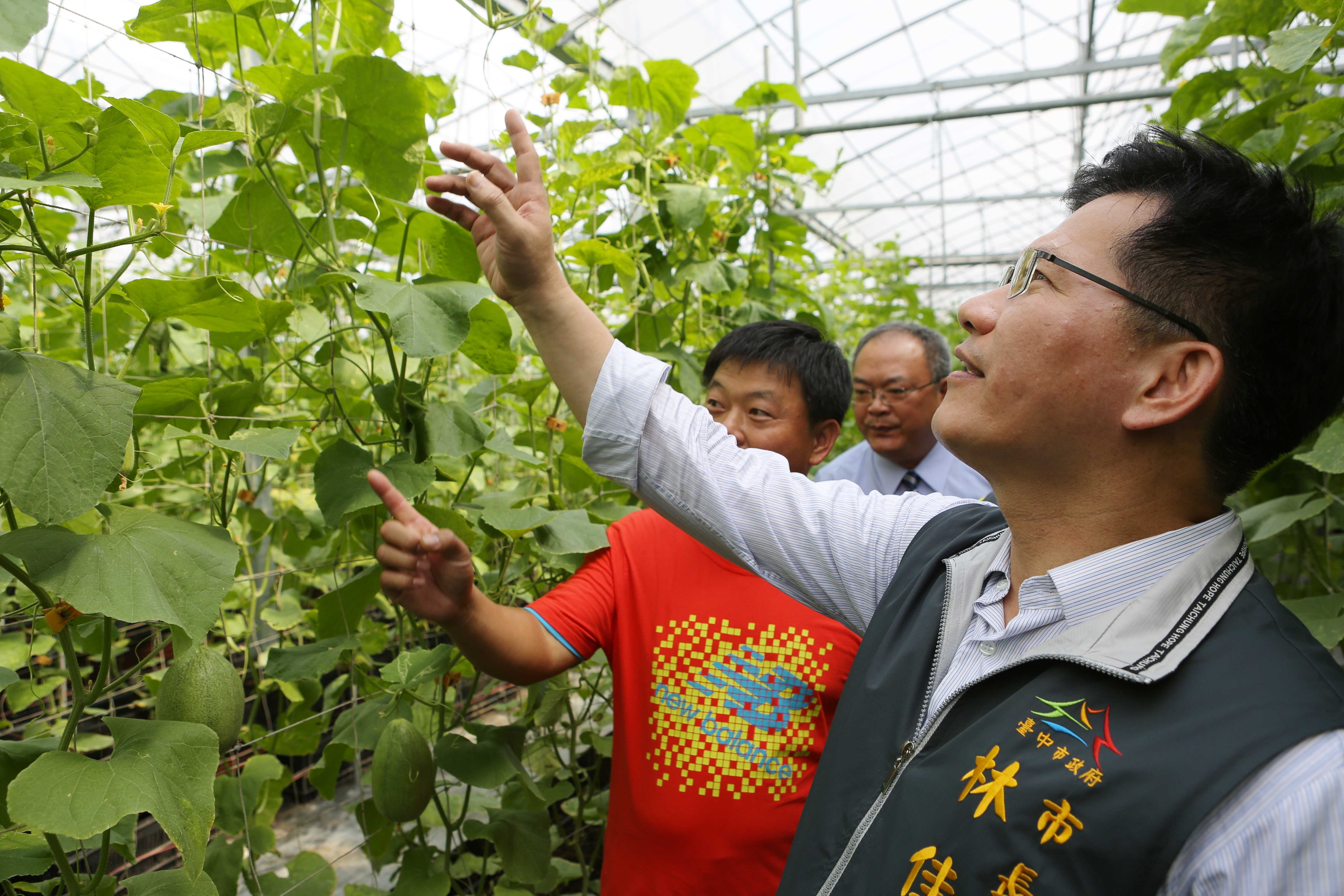 市府農業局今日在台中烏日舉行「青年加農、賢拜傳承」迎新式,林市長在農業局長王俊雄的陪同下參加活動,市議員吳瓊華、國立中興大學教授蔡東纂及多位農業賢拜也到場共襄盛舉。林市長頒發聘書予賢拜,並至農田裡一邊視察農作物栽種情形,一邊聽取賢拜與青農分享心得。