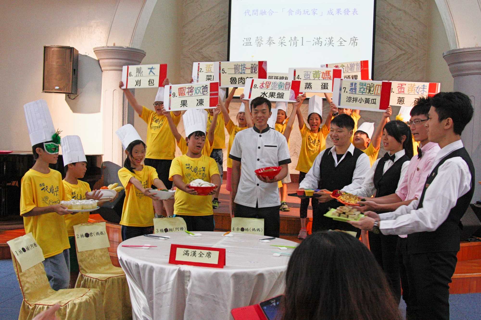 今年寒暑假期間,協會規劃由據點的6位奶奶以師徒相授、實作等方式,將古早味烹飪技藝傳授給弱勢家庭兒童,今天共有35位孩子一起擔任總舖師,共同煮出刈包、肉燥飯、蘿蔔糕、蔥炒蛋、蒸蛋等一桌共9道美味菜餚,讓平日辛苦的單親家長及隔代教養的爺爺奶奶享用孩子們的學習成果。,