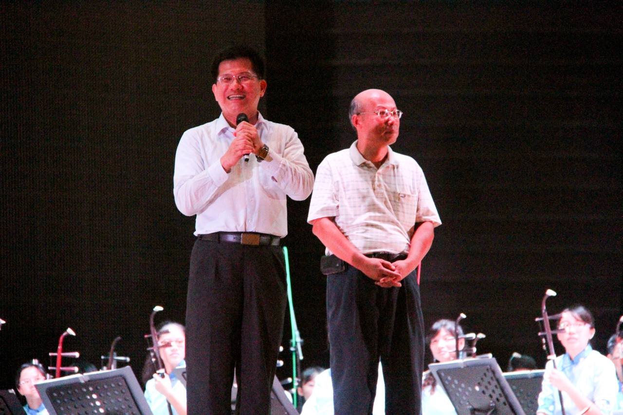 為發揚傳承客家文化與精神,台中市政府客家事務委員會今(22)日晚上在圓滿戶外劇場舉辦「夏客有樂町-客家國樂音樂會」,由70人組成的大型客家國樂團,與知名指揮家黃光佑、義大利薩克斯風音樂家馬力奧(Mario Ciaccio)合作演出,市長林佳龍也到場聆聽,他表示,台中擁有非常豐富的客家文化與優美的客家民謠,希望民眾能擁有一個快樂的夜晚,盡情享受這一場豐富精采的視覺與聽覺饗宴。