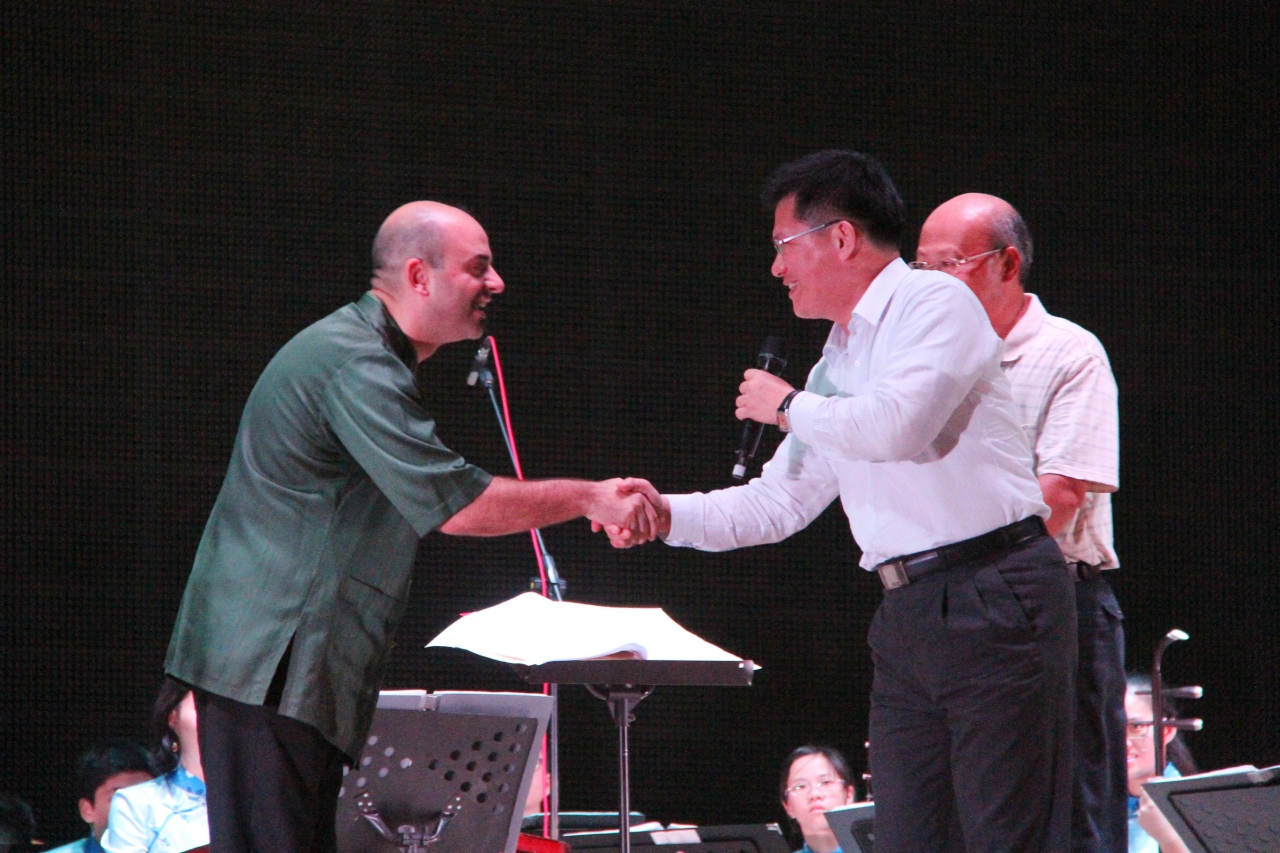 擔任客席的指揮家黃光佑,他以敏銳細微的情感詮釋出令人驚嘆的動人音符,並以精準的指揮手法清晰的掌握中國音樂特性與風格,被譽為台灣國樂界優秀青年指揮家。(8/22*7)