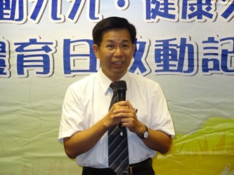 副市長潘文忠、參議王岳彬、教育局長顏慶祥、體育處長房瑞文、台中市體育總會籃球委員會主任委員林崑田、救國團台中市團委會總幹事王崇綸等人今(25)日蒞臨「國民體育日」系列活動啟動記者會,以「運動九九‧健康久久」為活動口號,邀請市民朋友一同響應活動。