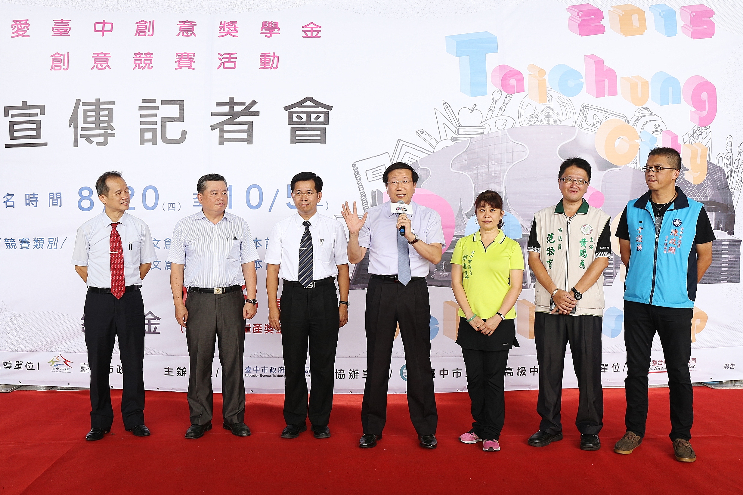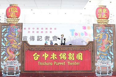 台中市政府教育局今(25)日在台灣大道市政大樓舉辦「104年度愛臺中創意獎學金」創意競賽活動宣傳記者會,由「台中木偶劇團」帶來精彩表演揭開序幕。副市長潘文忠在教育局長顏慶祥的陪同下出席活動;去年高中職組文創設計類金獎獲獎學生,王昱超、賴冠樺、林宏倫及張志傑也現身會場,分享設計作品「Printing」,而這項作品也將量產傳承,作為今年愛臺中創意相關活動的伴手禮。