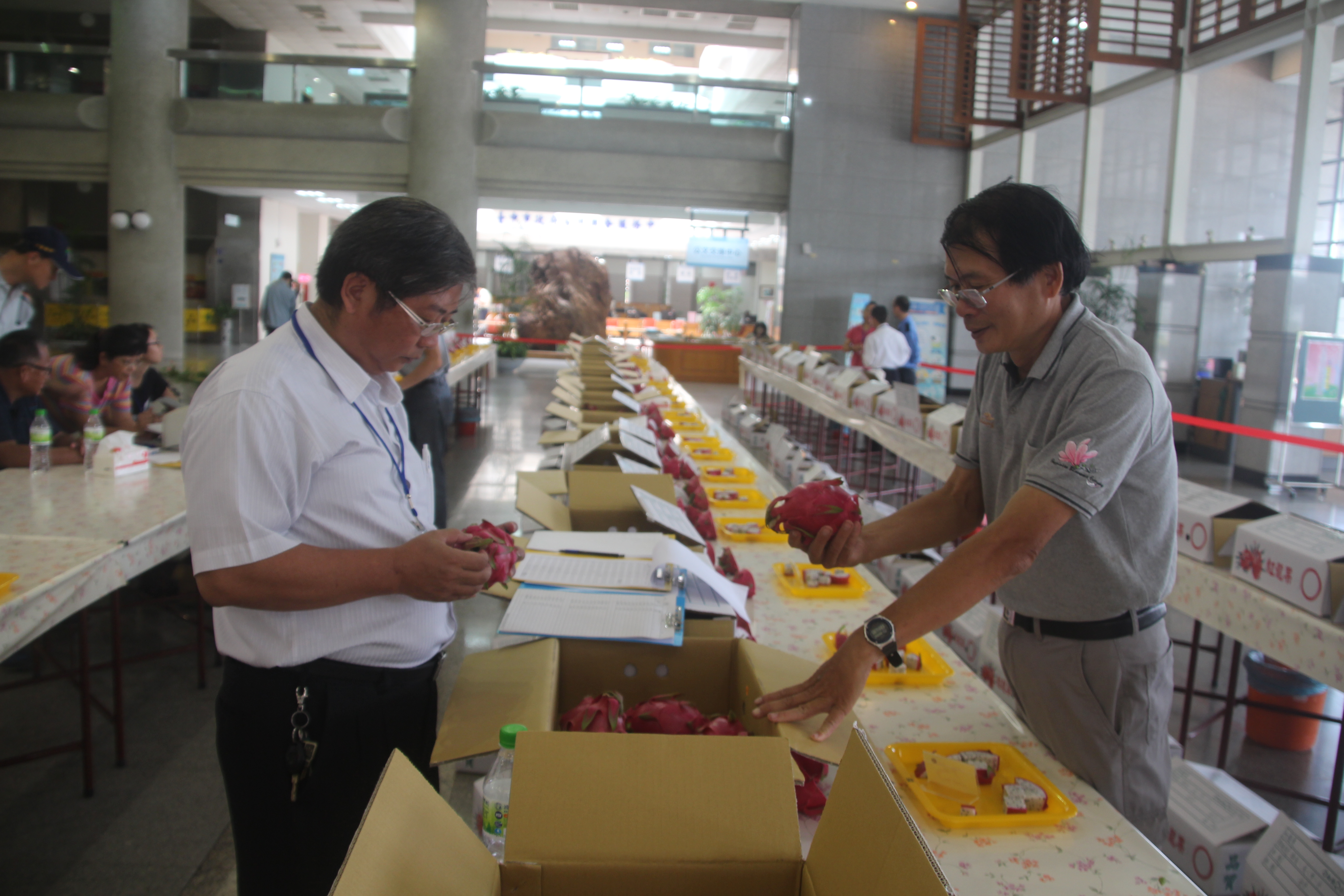 農業局表示,評鑑活動邀請農業改良場及農業學術研究單位等不同領域專家擔任評審,依據外觀、風味口感、重量及糖度等項目進行果品評分,農民紅龍果栽培技術及果品品質相當高,評審評分仔細,最後農民徐建勝其紅龍果甜度達20.8,榮獲第一名。