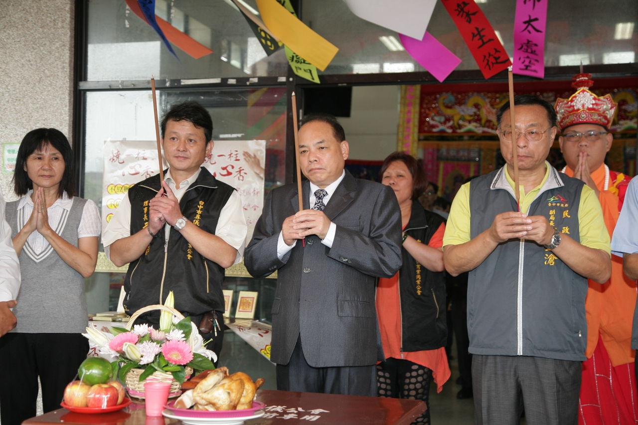 民政局蔡局長表示,今天中元普渡的不同之處,不僅沒燒很多香,僅以幾支香代表,更以米、紅豆、綠豆、糖果餅乾代替金紙,現在是提倡環保的時代,希望透過政府的推動,鼓勵、宣導民間少燒香與金紙,盼市民也能僅燒少數幾支香代表,用米代替金紙,以鼓或音樂代替鞭炮等,期望市民共同響應。