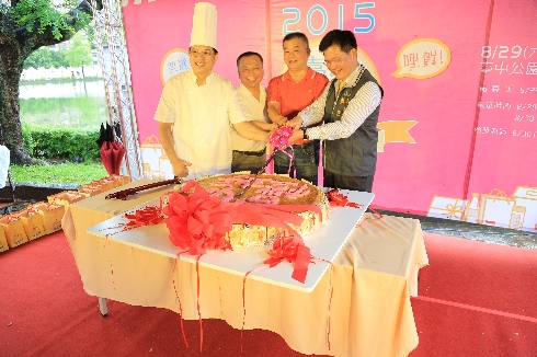 「台中禮好,好禮在台中!」2015台中市十大伴手禮票選活動共132家廠商卯足全力拉票,今(30)日下午結果出爐,市長林佳龍也前往現場支持,並參與義賣活動,成功將太平蝙蝠藍掛軸以及重達100斤的嘉味軒鳳梨酥,分別以8萬8及10萬元賣出,義賣所得將全數捐贈給中部地區燒燙傷重建中心。