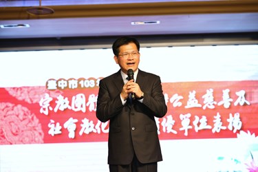 林市長也表示,台中市是宗教很鼎盛的城市,各種宗教都在台中蓬勃發展,這代表台中是塊福地,「福地福人居」,因為宗教界的幫助,出錢出力出時間協助市府照顧需要照顧的人,將光芒照射到社會各個角落。