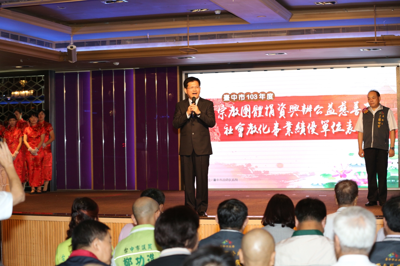民政局除獎勵受獎單位,也邀請社團法人台中市道教聯合總會、台中市佛教聯合會、台中市佛教會、中華民國一貫道總會台中市弘道分會等共襄盛舉,希望與各宗教團體進一步進行交流,也鼓勵其他宗教團體,共同投入公益慈善及社會教化的行列。