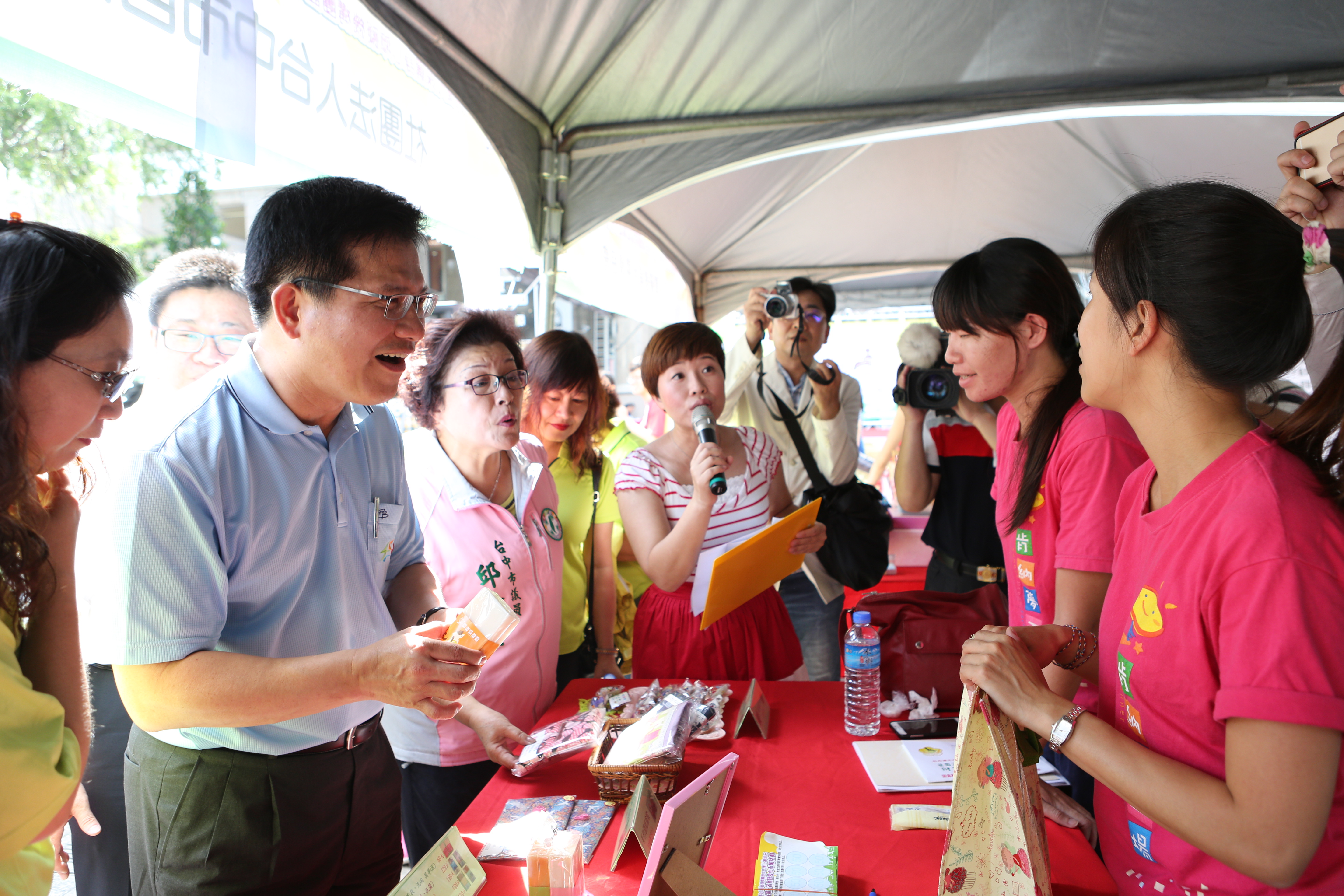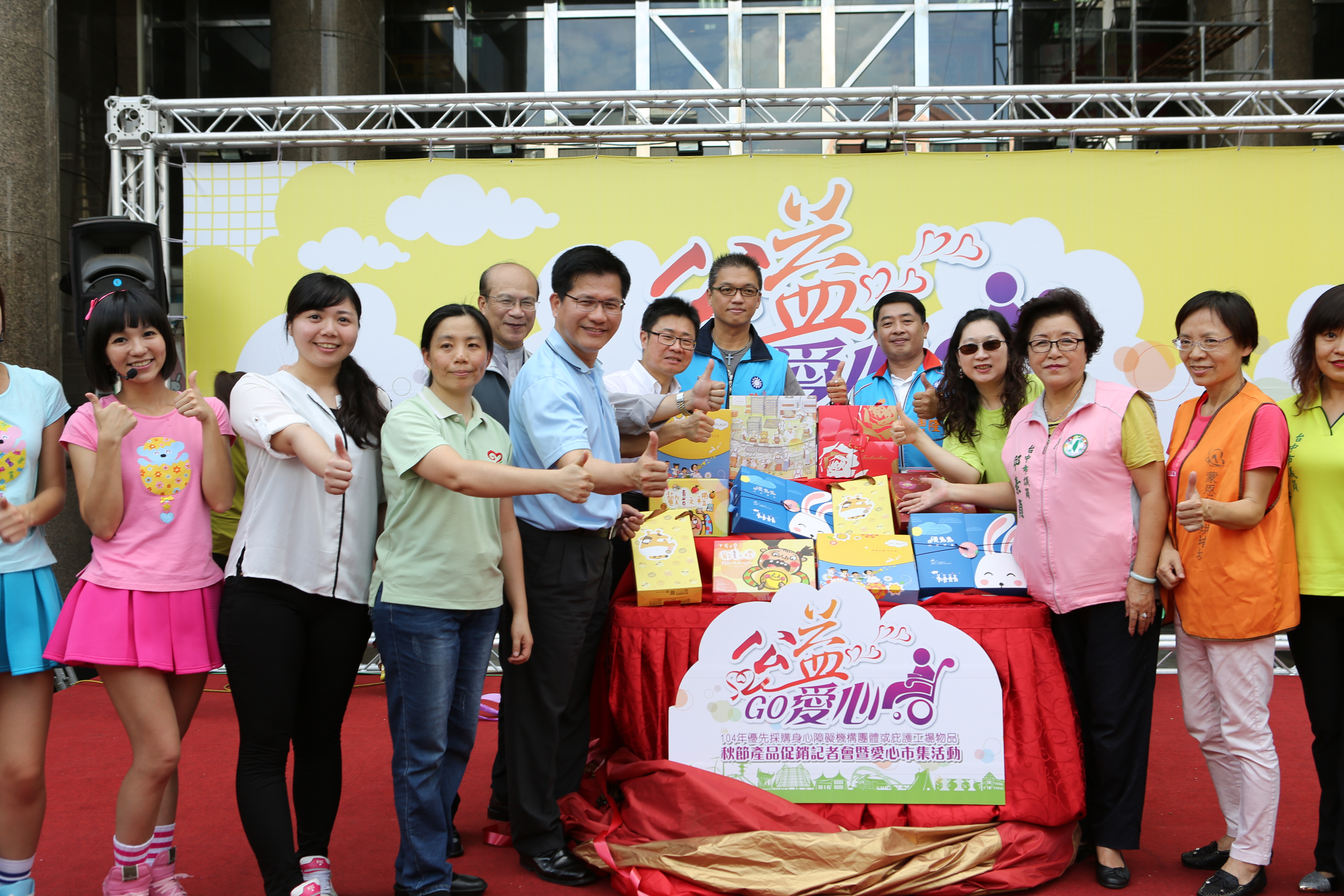 104年優先採購身心障礙機構團體及庇護工場物品─秋節產品促銷記者會與愛心市集,今日在一中街水利大樓前廣場盛大登場。現場邀集台中市17家身心障礙機構團體及庇護工場到場擺攤,販售精緻的手工產品及月餅禮盒。
