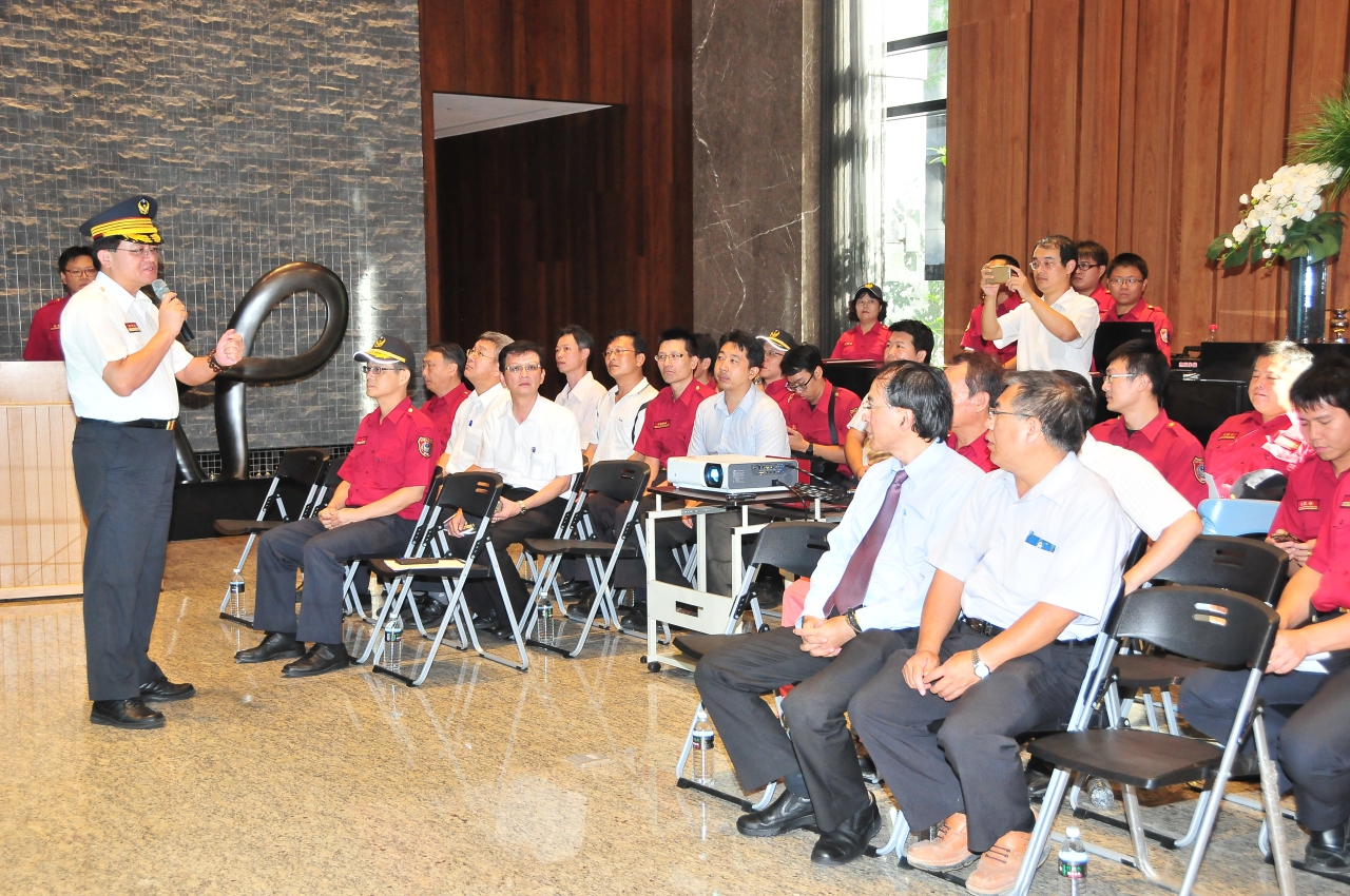 消防局長蕭煥章簡報時表示,高層建築物指高度在50公尺或16層以上之建築物,在火災搶救上及人員逃生上遠較一般建築物火災困難許多,難以用消防車直接進行搶救,如何安排人車救援、如何輸送水源等,都是消防人員需要學習的課題。