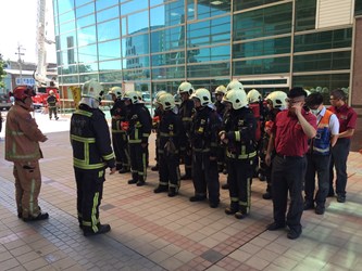 第四救災救護大隊並指出,今天演練也包含消防車輛的部署、抵達現場的處置作為、救災人員的安全管制、消防人員的佈線搶救、視情況選用雲梯車、安全梯或緊急昇降機執行救援任務、消防水源的掌握及選擇、人命救助及搜索、雲梯車升梯操作防護作業及安全回報機制、救出傷患之處置及後送等,過程逼真、嚴謹,所屬沙鹿、清水、梧棲、大肚、龍井、犁份、清泉等消防車13輛、共30人參與演練。