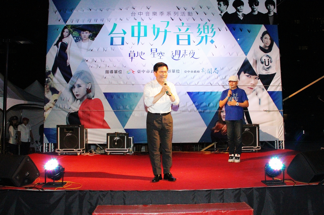 台中市政公園首次大型活動「台中音樂季─台中好音樂」,今(18)日晚上熱鬧登場,由安心亞、高慧君、街頭藝人古梅馨及靜宜大學熱音社帶來一系列膾炙人口歌曲,氣氛熱鬧;市長林佳龍也到場與民眾一起坐在草地,全程聆聽音樂,並邀請大家未來三週繼續共享草地、星空、週末夜。