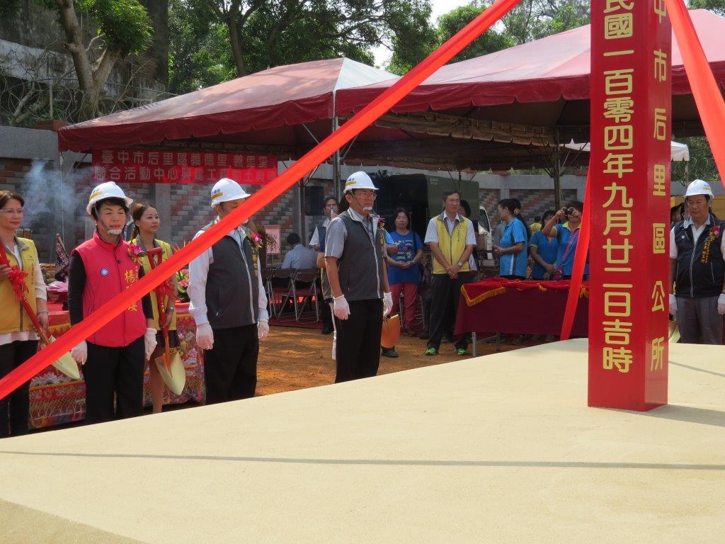 市府民政局長蔡世寅以及立法委員楊瓊瓔等人今天共同上香祈求開工順利及工程圓滿,蔡局長表示,后里區義德里、義里里聯合活動中心自102年規畫至今,今天終於動土,感謝當地民意代表及公所共同爭取,以及國防部無償撥用土地。