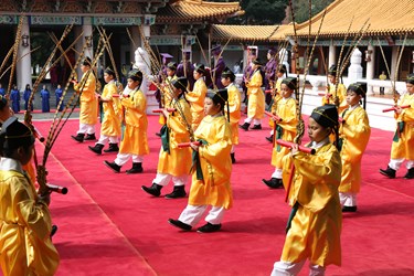 習儀儀式從迎神開始,行上香禮、三獻禮、讀祝文、飲福受胙、望燎,到最後送神,完成整個祭祀程序;身穿暗紫色單衣的禮生引導身著長袍馬褂的正分獻官緩緩步行,還有古雅樂演奏以及全台僅有的八佾舞表演,吸引大批民眾及學生觀禮。