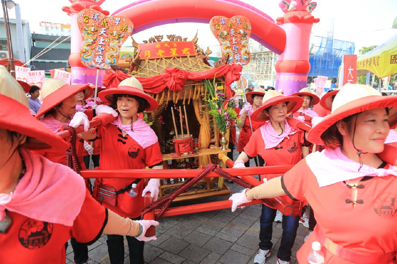從樂成宮分靈至泰國南瑤宮的月老星君,今日一早也特地回宮祝壽,宮廟盛大迎接,熱鬧滾滾。市議員何敏誠、李中都到場共襄盛舉。