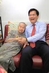 林市長問蔡阿嬤平日如何養生?家人表示,阿嬤吃的清淡,心情保存愉悅,沒有物質慾望,平時就是念佛與看電視,每日快快樂樂過日子。