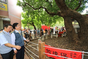 此外,趁著今天的機會,林市長也進行一場尋人任務。二年前各界齊力保護茄苳王公,他與一對母女及小孩三人在牌匾前合作,當時答應要將照片寄給她們,但是二年來遍尋不著,利用茄苳王公契子每年中秋回娘家的機會,希望大家幫忙尋找,可以把照片送到她們手上,也感謝她們一同搶救茄苳王公。(9/27*8)