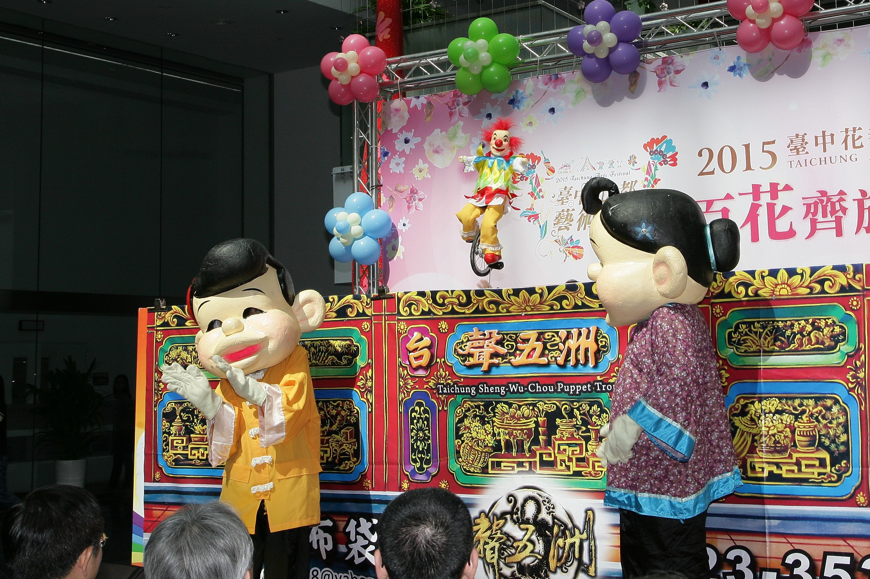 文化局今(30)日舉行台中花都藝術節行銷記者會,鎖定「百年慶,藝起來」、「傳藝展風華」及「傳統藝術」等18場藝術演出介紹。由台中聲五洲掌中劇團帶來精采表演,展現濃厚傳統藝術風格。副市長潘文忠也在文化局長王志誠的陪同下一同出席,國家表演藝術中心台中國家歌劇院營運推動小組副總監林佳鋒也到場參與。
